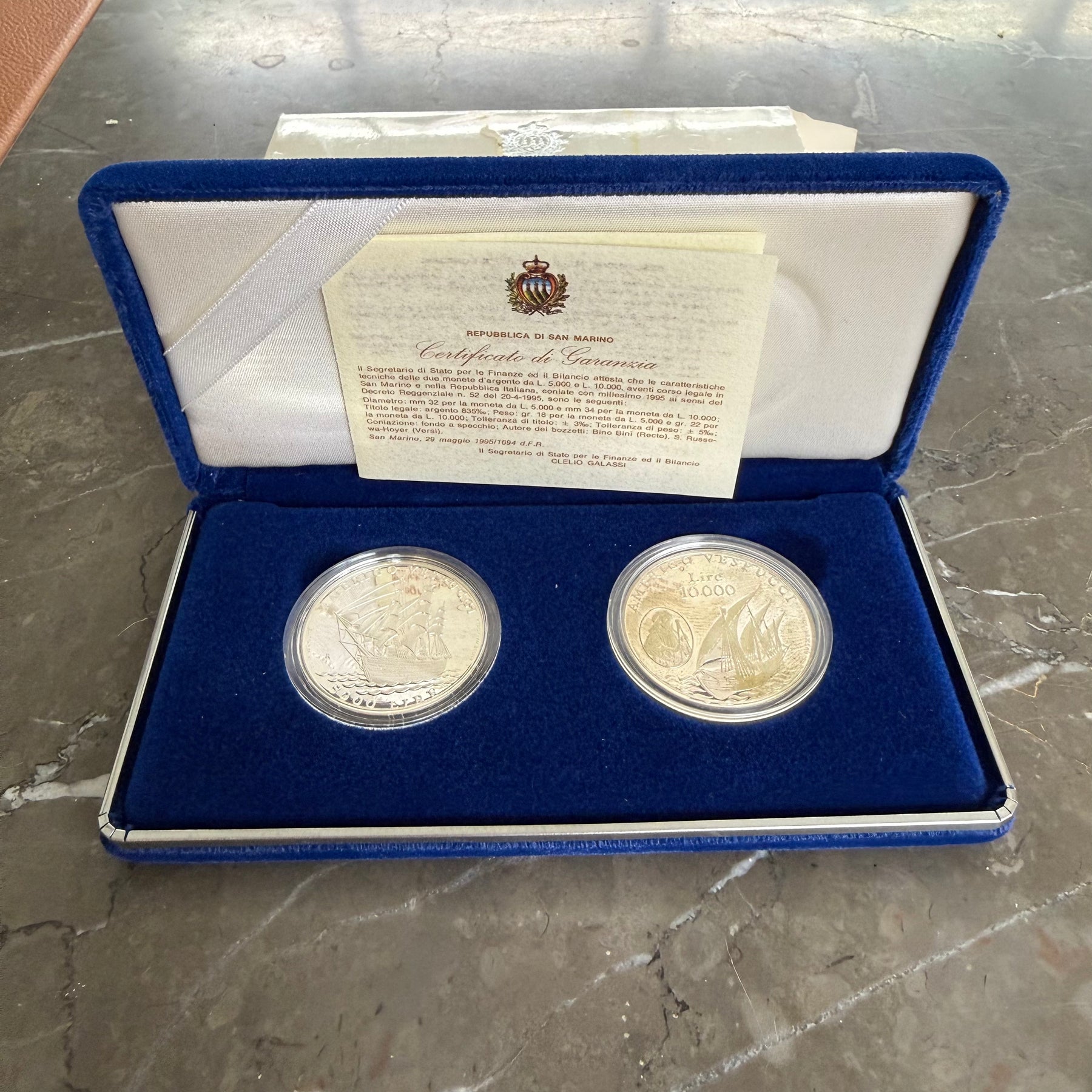 Monete in argento 5000 10000 Lire Repubblica di San Marino Amerigo Vespucci 1995