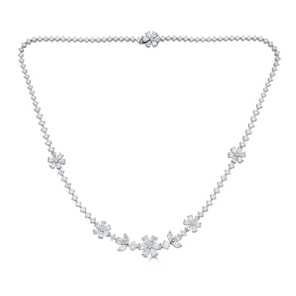 Zydo collana floreale con diamanti taglio rotondo e fancy oro bianco 56987