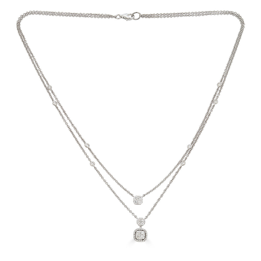 Zydo collana a doppia catena con diamanti rotondi incastonati illusion oro bianco 61025