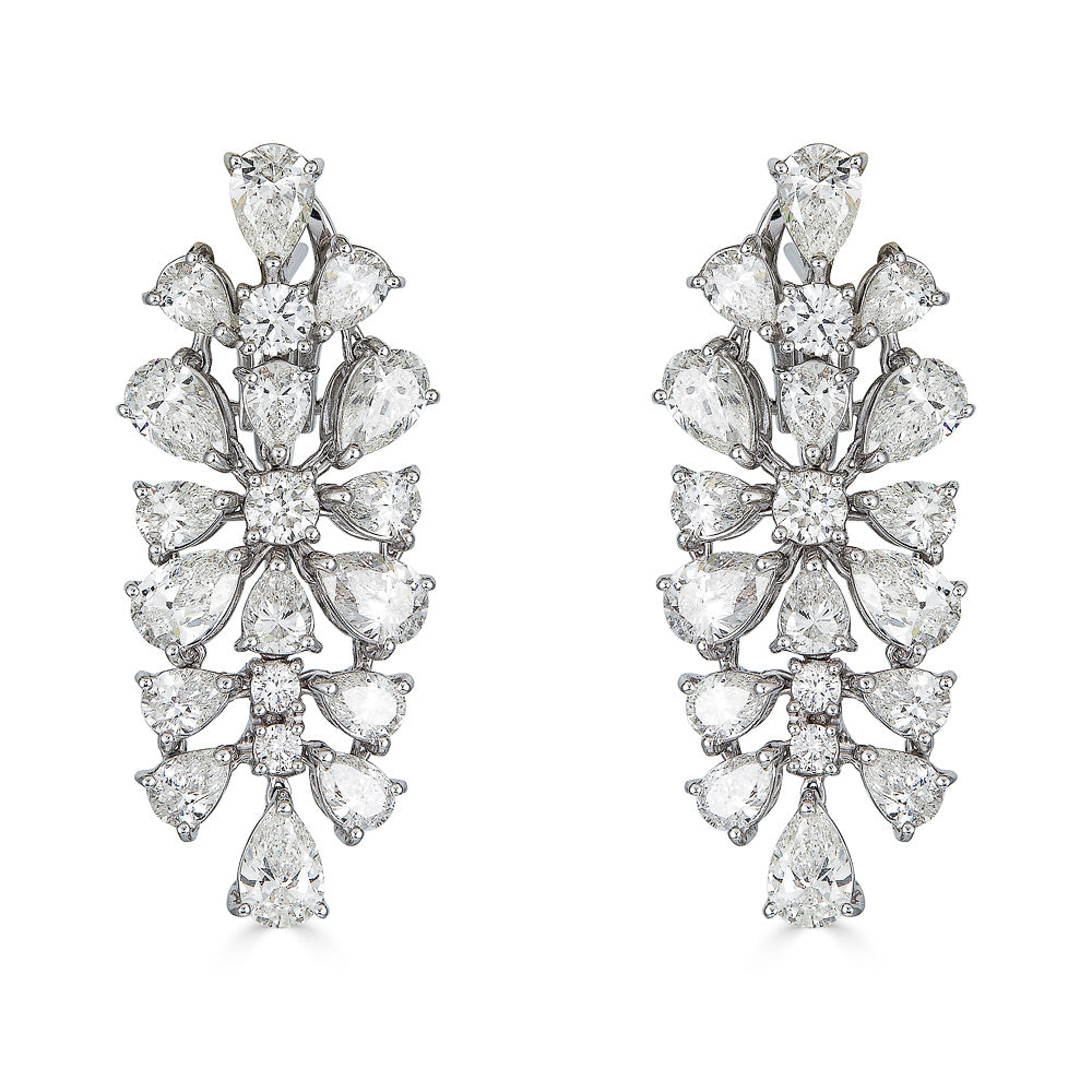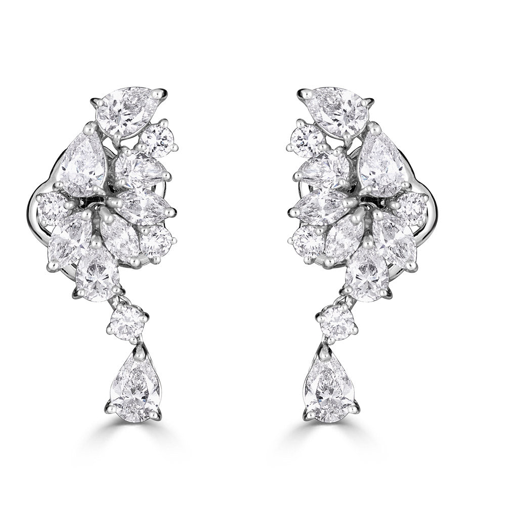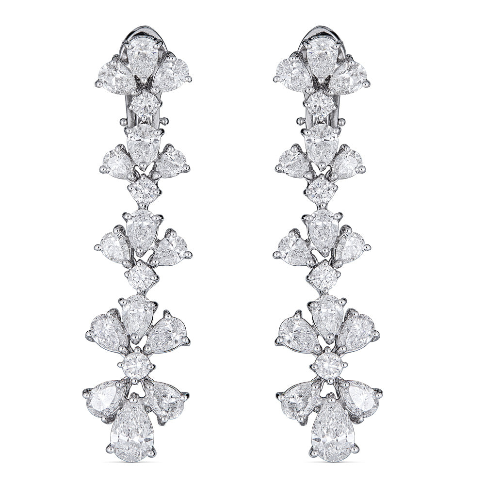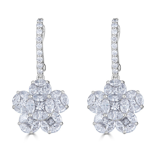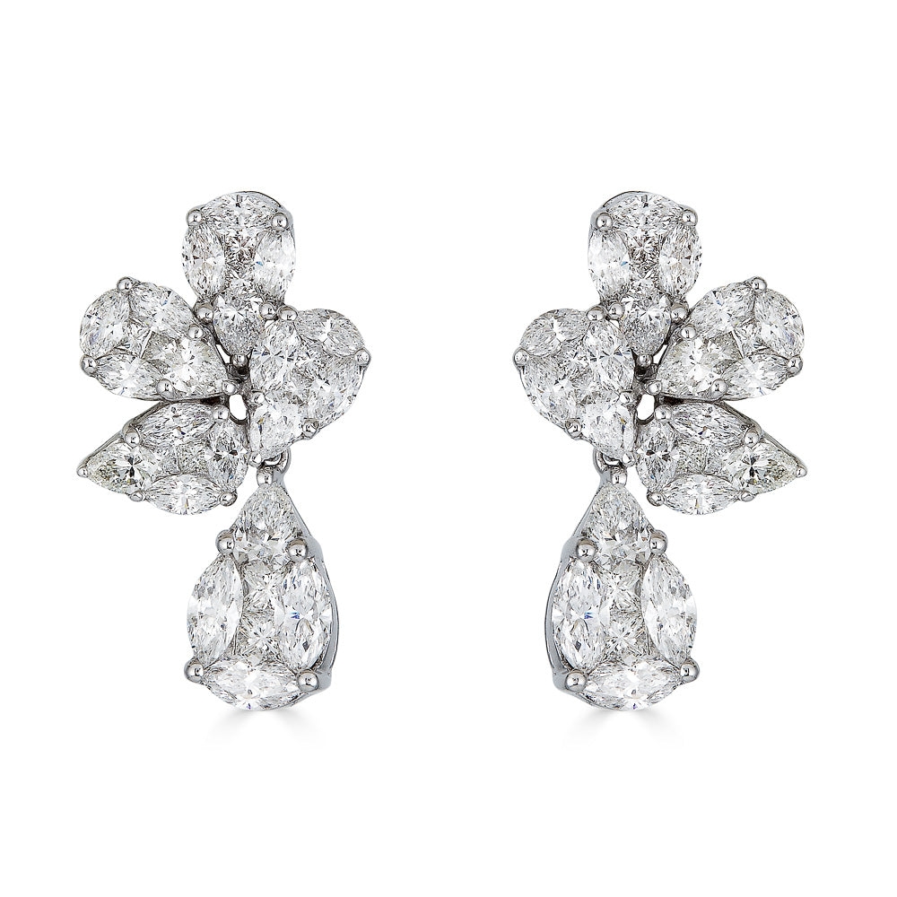 Zydo orecchini pendenti a grappolo e a forma di fiore con diamanti a forma di marquise e a pera oro bianco 57484
