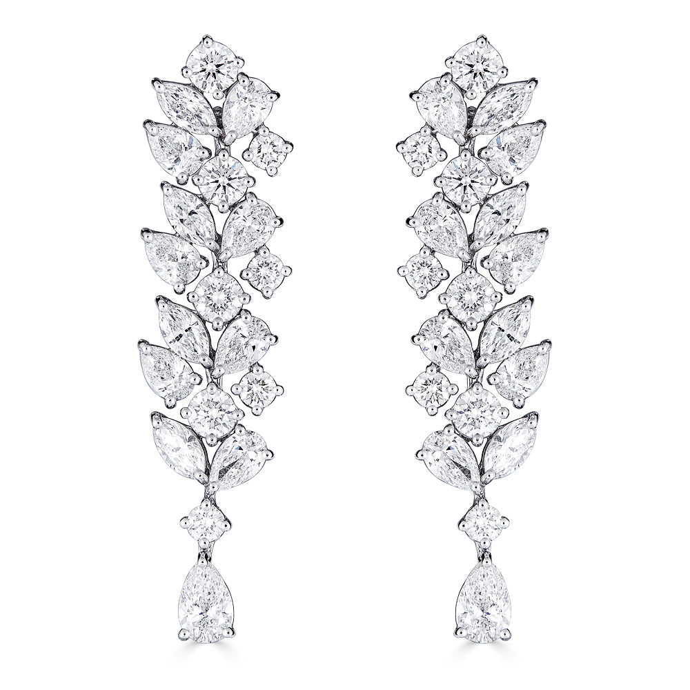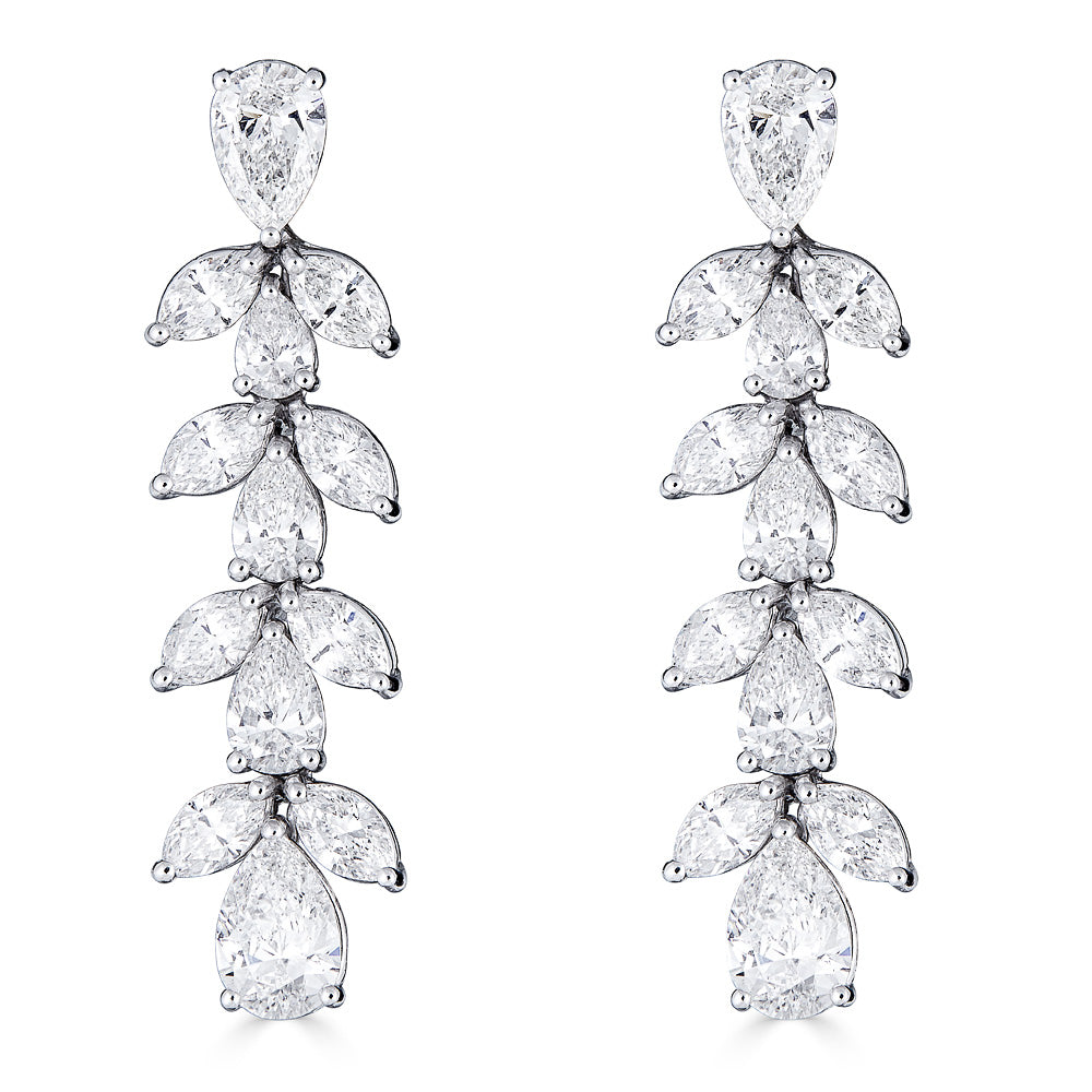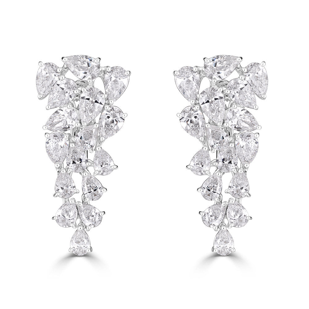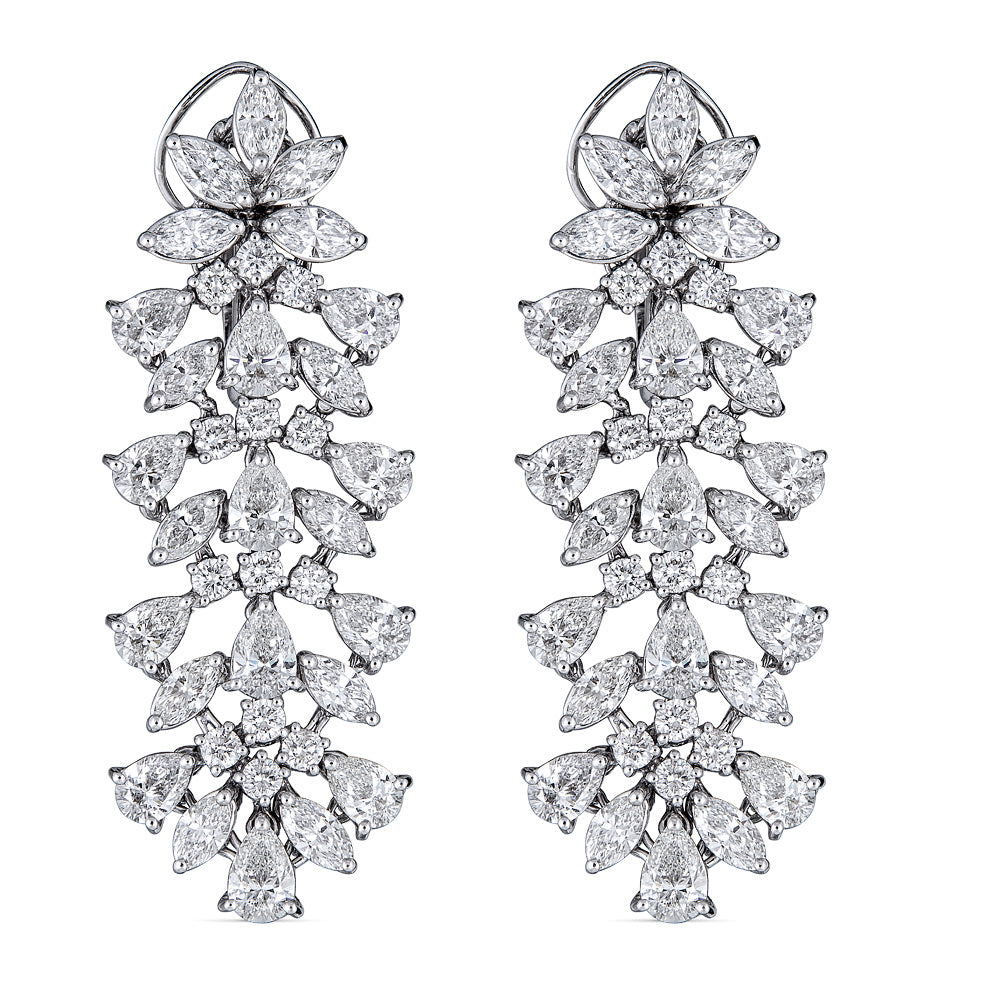 Zydo orecchini pendenti a grappolo e a forma di fiore con diamanti a forma di marquise e a pera oro bianco 57484