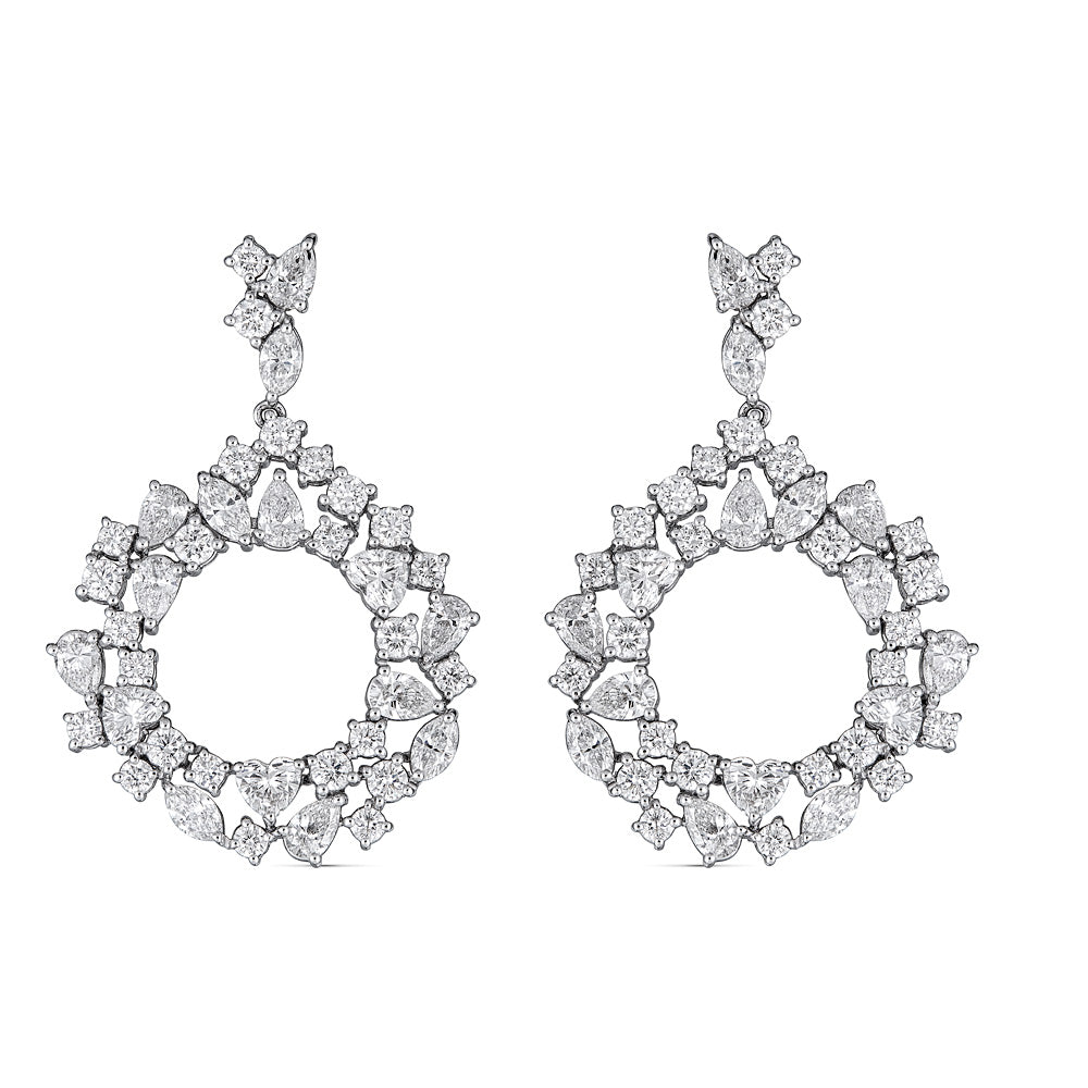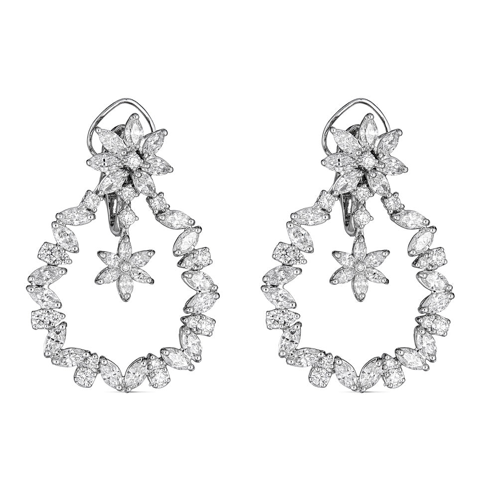 Zydo orecchini pendenti a cerchio con fiore e diamanti rotondi e marquise oro bianco 53693