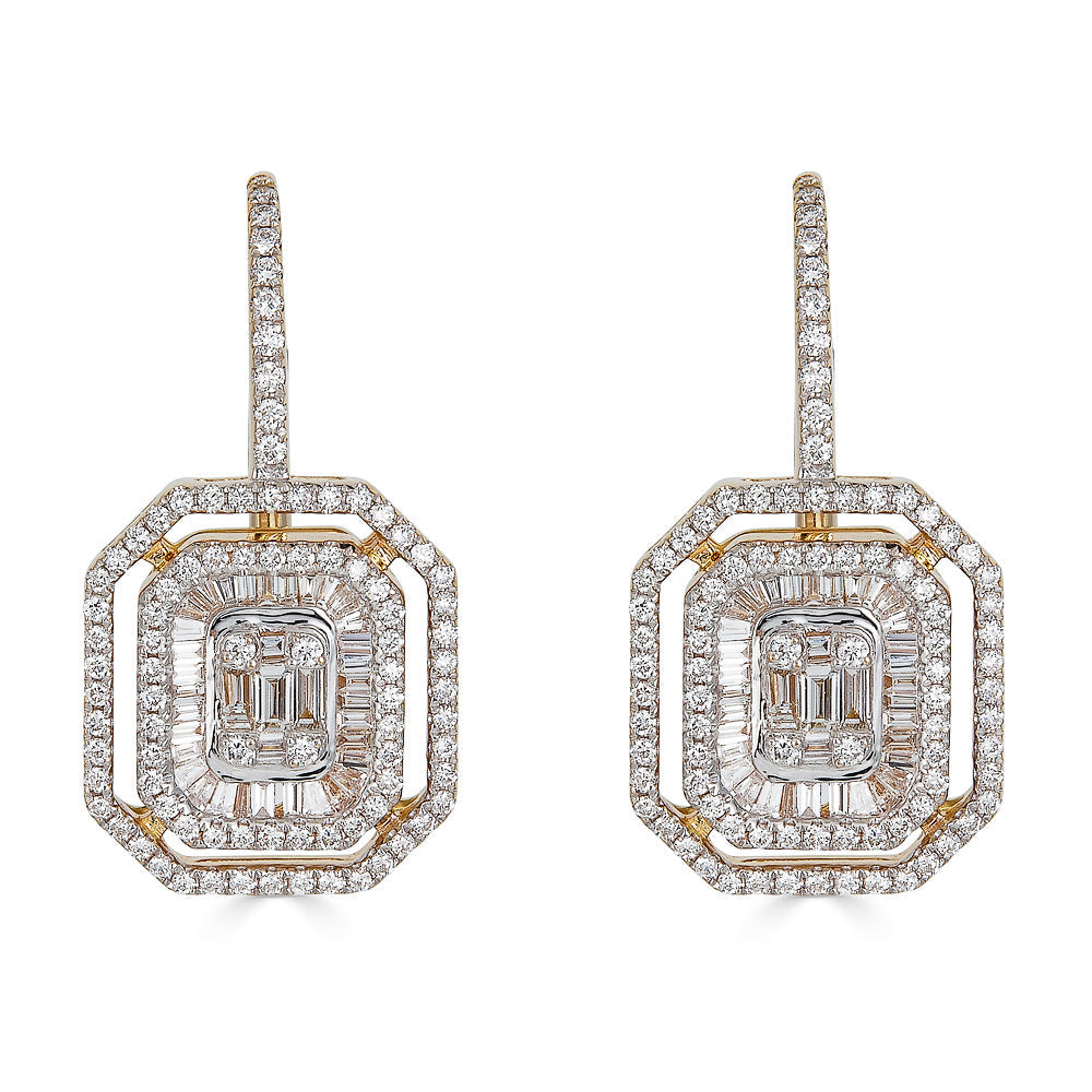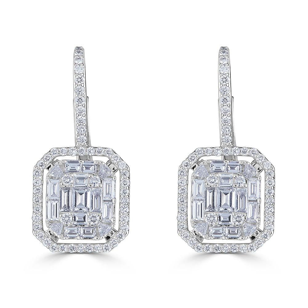 Zydo orecchini pendenti ottagonali con diamanti taglio rotondo e smeraldo incastonati a illusione oro bianco 58548