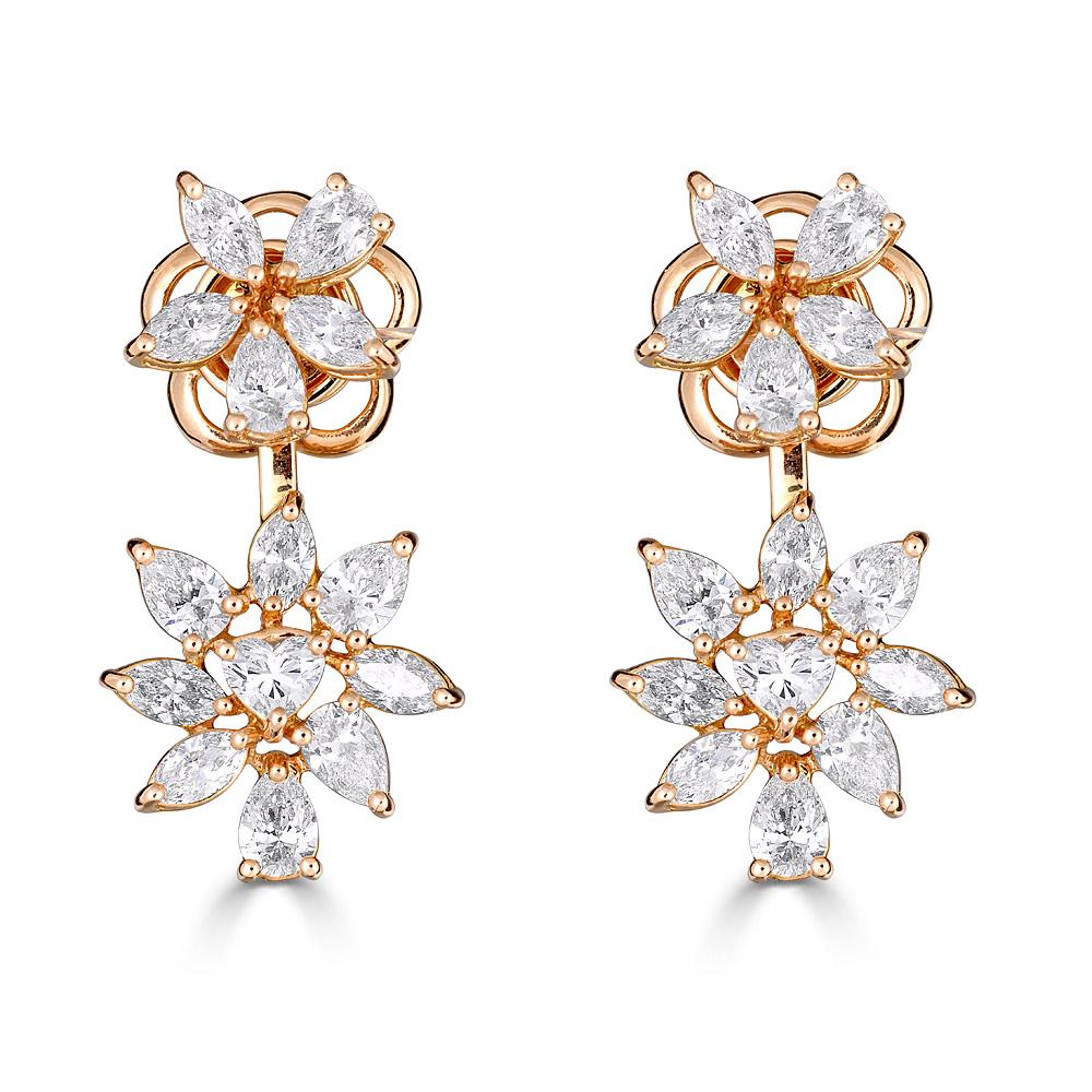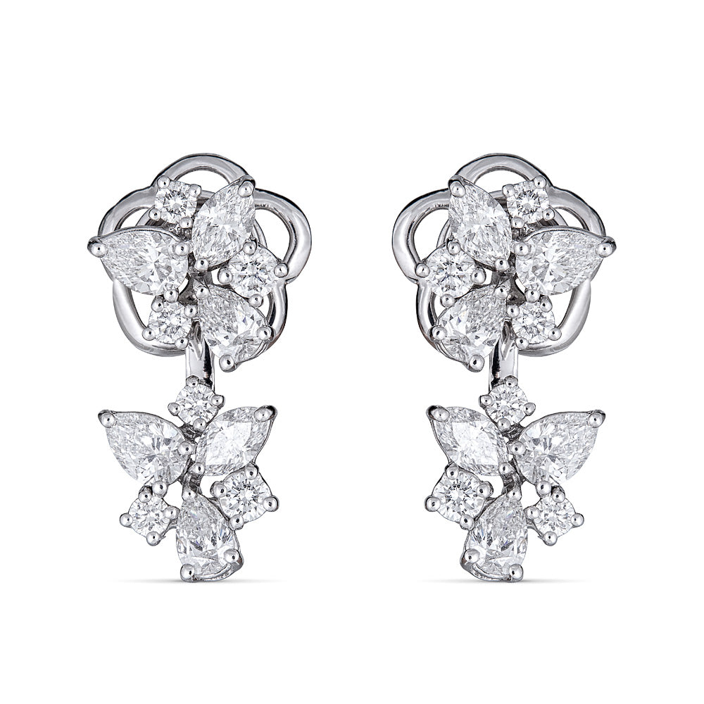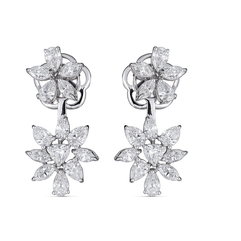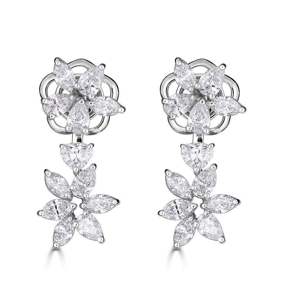 Zydo orecchini floreali up and down con diamanti a taglio rotondo e a goccia oro bianco 59148