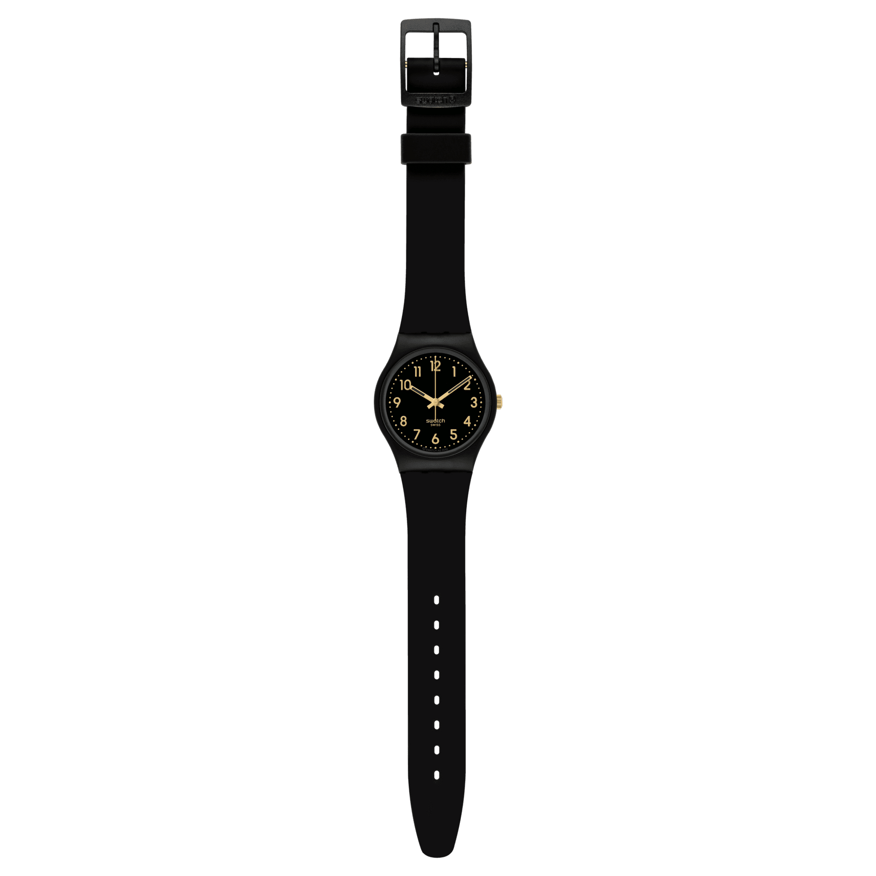 Lo Swatch orologio GOLDEN TAC Originals Gent 34mm SO28B113 è un gioiello da polso che si distingue per il suo luccichio dorato. Il cinturino e la cassa neri sono realizzati con materiale biosourced, garantendo una qualità ecologica. I numeri sul quadrante nero rendono ogni momento speciale. Scopri l'eleganza e la sostenibilità in un solo orologio.