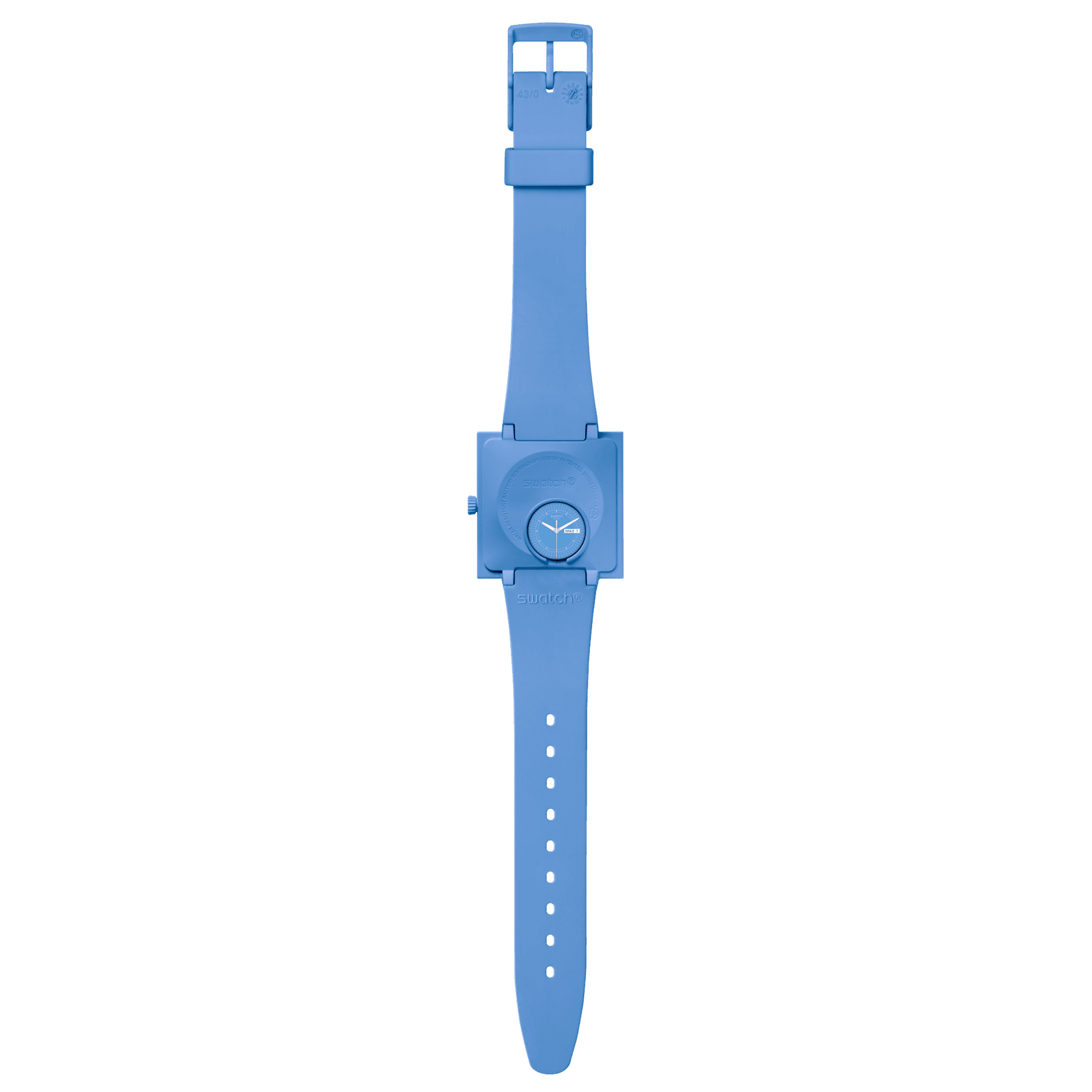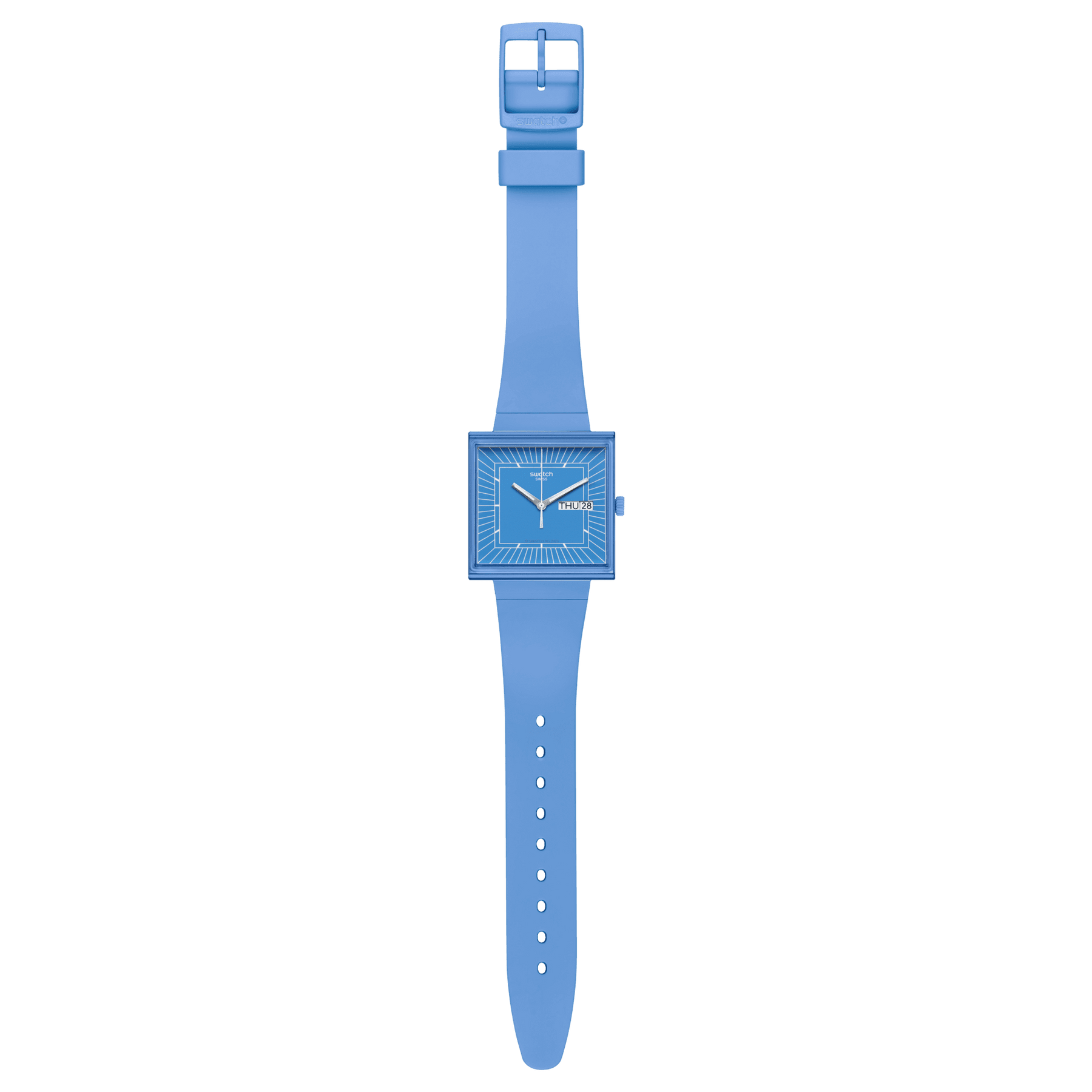 Tic, tic, tic! Con il nostro Swatch What If...Sky, non solo sarai puntuale, ma avrai uno stile incredibile. La cassa azzurra in bioceramica permette una vista laterale degli indici bianchi, mentre le lancette fosforescenti e la finestra per la data rendono il quadrante quadrato unico. Completa il tuo look con il cinturino integrato e la fibbia in bioceramica.