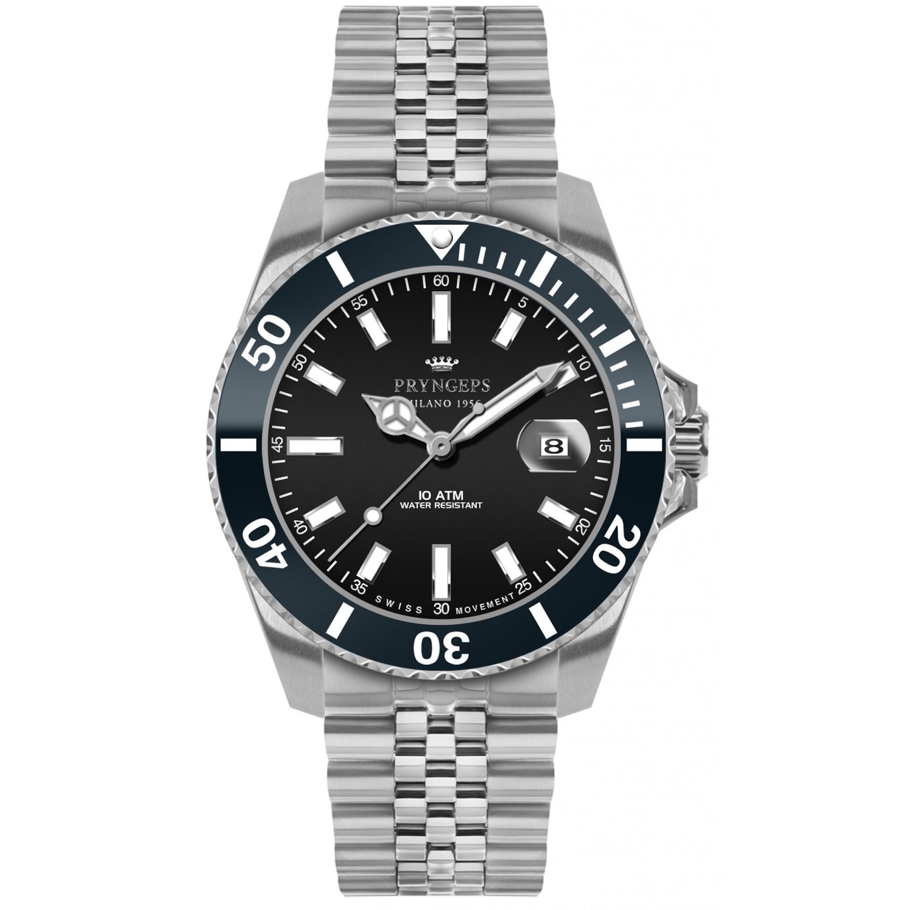 Pryngeps hodinky Adriatico Professional 100m 42mm černá keramická luneta modrá ocel quartz A1082 N/B