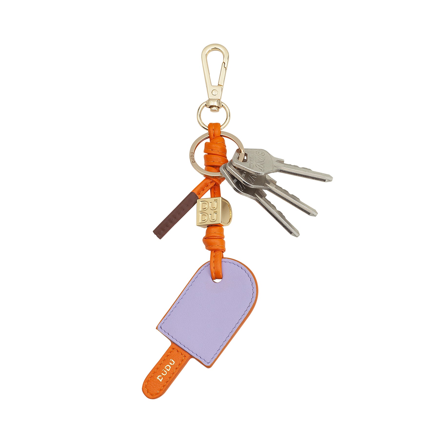 DUDU kožená klíčenka se zmrzlinou, klíčenka pro ženy a muže s prstenem a karabinou, barevný letní design