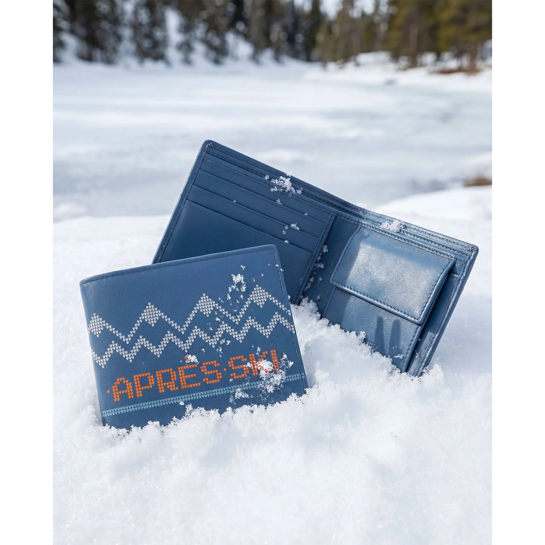 Portafoglio piccolo da uomo in pelle, ispirato all’atmosfera calda e rilassata dell’après ski. Un accessorio compatto ma ricco di personalità, pensato per chi ama distinguersi anche nei dettagli. Il motivo grafico richiama i pattern invernali tipici delle maglie nordiche, reinterpretati in chiave moderna e urbana, mentre la scritta “après ski” aggiunge un tocco ironico e contemporaneo. Realizzato in morbida pelle di alta qualità, è piacevole al tatto e progettato per accompagnarti ogni giorno senza ingombro. All’interno offre lo spazio essenziale per carte, banconote e monete, con una disposizione pratica che mantiene tutto in ordine. Le finiture curate e i contrasti cromatici interni donano carattere e rendono l’esperienza d’uso ancora più piacevole.