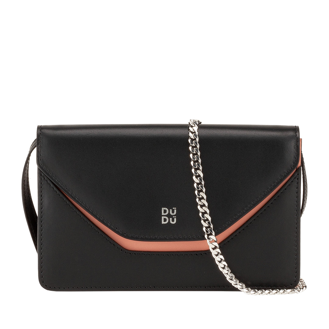 DUDU lille skuldertaske med kæde til kvinder lavet i Italien i ægte læder, kan ombygges til en pose, mini kuverttaske