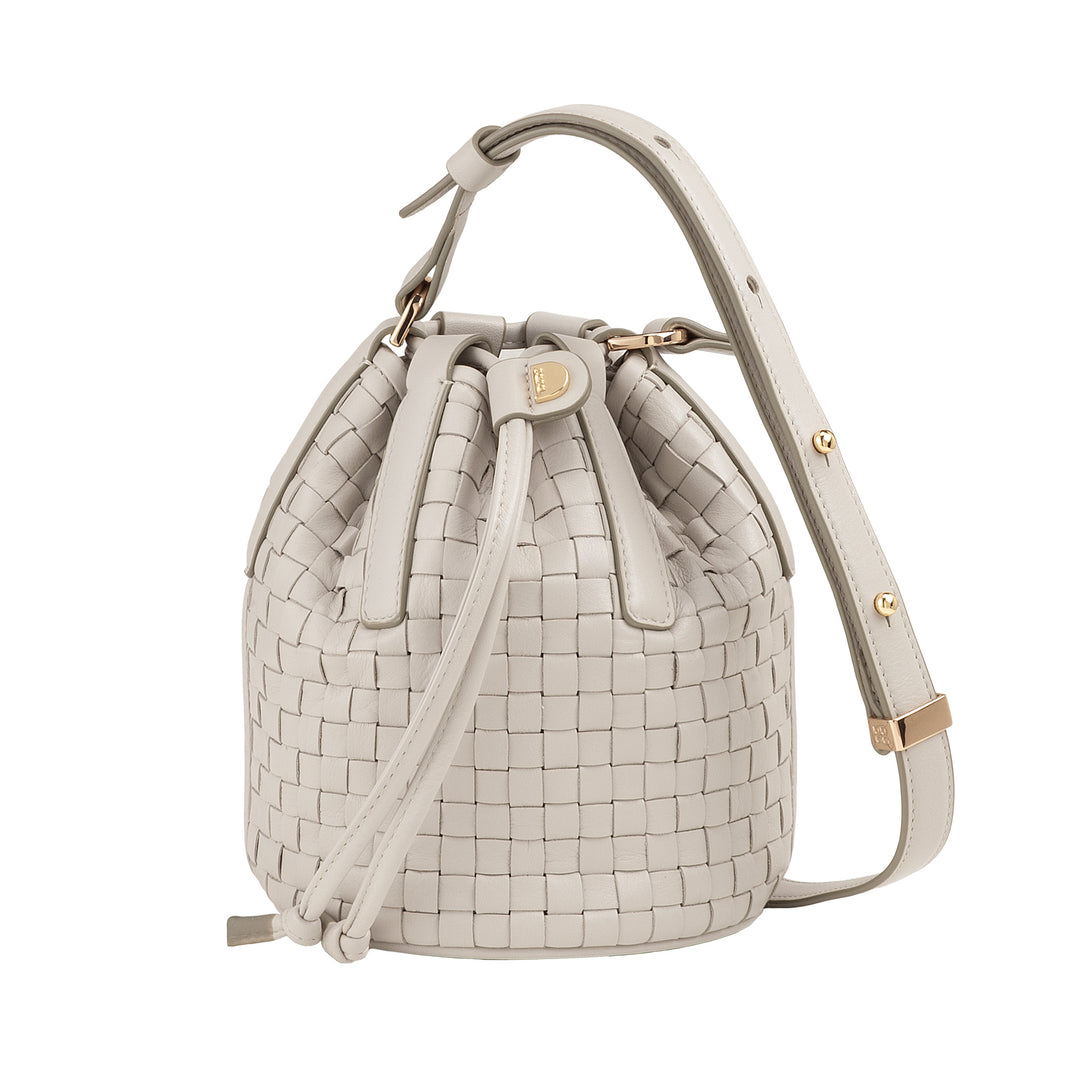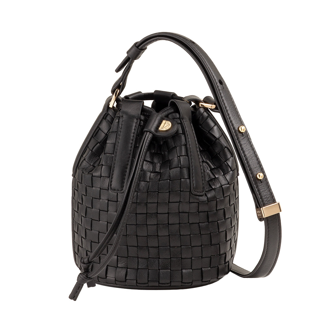 DUDU Bucket Bag i vævet læder - lille håndtaske til kvinder med justerbar skulderrem, snøre og indvendig clutch, elegant og håndværk