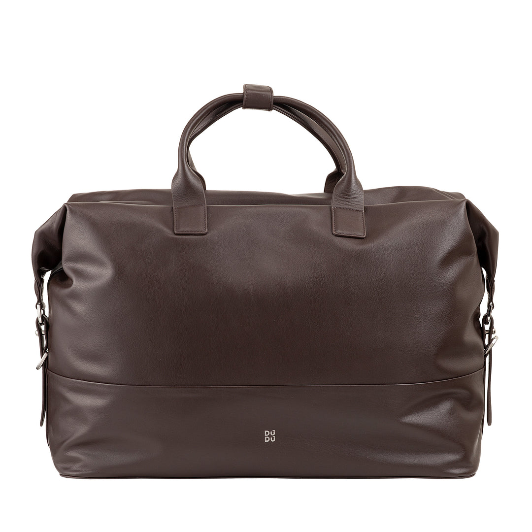 DUDU rejsetaske i læder til mænd og kvinder, weekendtaske med to håndtag, håndbagage eller skuldertaske 28 liter med lynlås
