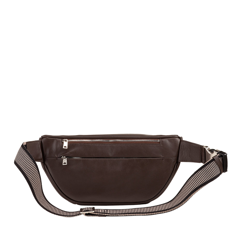 DUDU taljetaske i ægte læder til mænd, kvinder med justerbar rem, rent elegant rummeligt design, taljetaske med 3 lynlåse