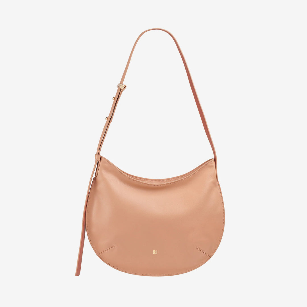 DUDU Medium blød skuldertaske til kvinder i ægte læder, Hobo-taske med justerbar skulderrem, skuldertaske med lynlås
