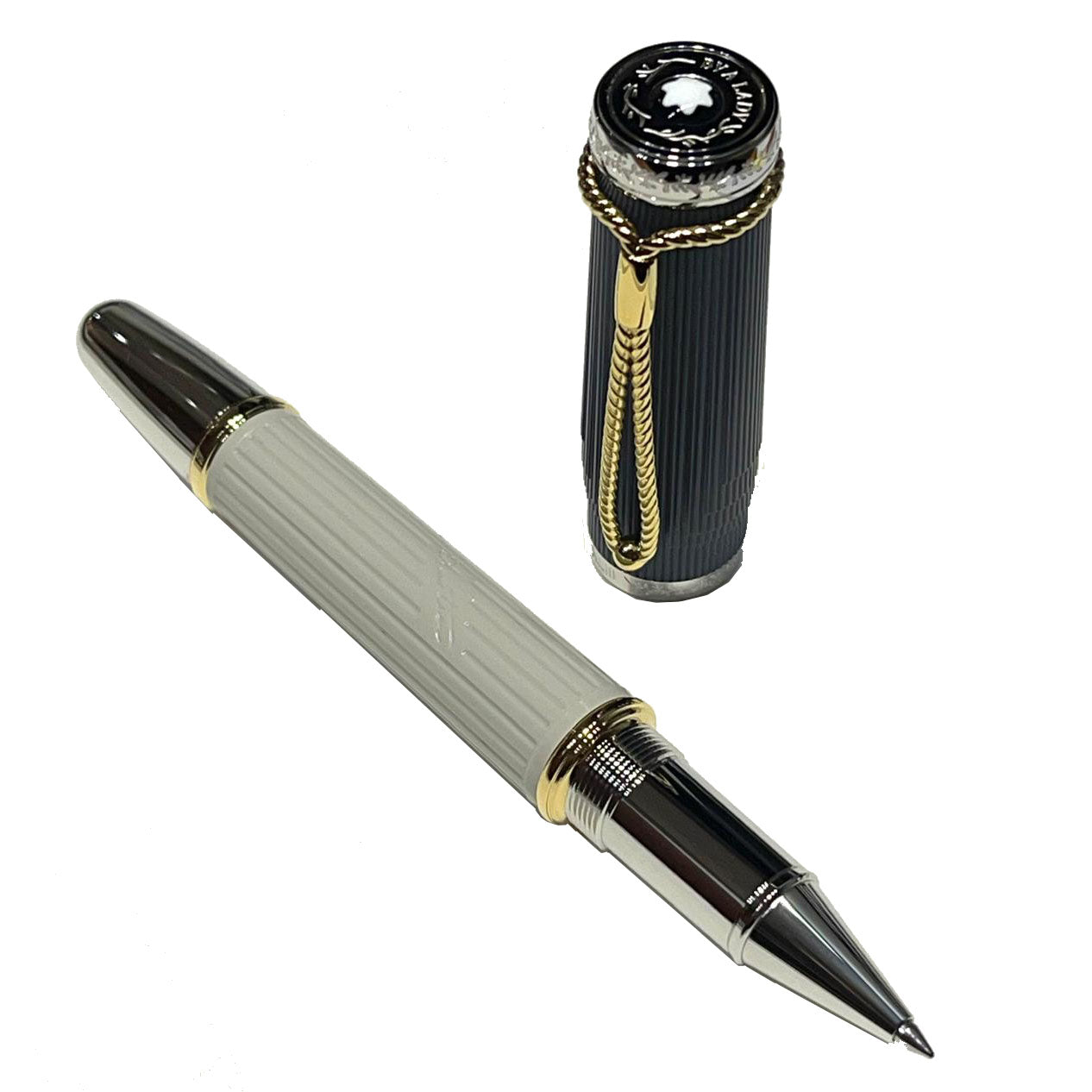 Få forfattere i litteraturhistorien har haft evnen til at skabe dialoger og bringe karakterer til live med samme elegance, ironi og list som den britiske forfatter Jane Austen. Montblanc skabte Writers Edition Homage to Jane Austen for at fejre en af ​​de mest berømte forfattere i engelsk litteratur. Denne udgave bringer liv til Regency-æraen, hvor de adelige landejendomme var skueplads for store fester organiseret for at dyrke sociale relationer og skabe ægteskabelige alliancer. Rillen i en klassisk søjle pryder den elegante sandstengrå harpikskrop sammen med Jane Austens signatur. Den kontrasterende grå-blå hætte minder om den type Regency-frakke med dobbeltkrave, der typisk bæres af herrer som Mr. Darcy i Pride and Prejudice. Guld-finish ringe på kroppen og platin-finish detaljer tilføjer et prikken over i'et til designet. Indgraveringen af ​​romertallene XLIII på hættens ring henviser til kapitlet i romanen, hvor Elizabeth Bennet ser hr. Darcys ejendom for første gang. Titelsiden på hans roman Sense and Sensibility, udgivet i 1811, sagde blot, at værket var skrevet "af en dame." Denne udtalelse fra forfatteren pryder toppen af ​​kasketten på Writers Edition Homage to Jane Austen Limited Edition sammen med Montblanc-emblemet. Selve silhuetten af ​​skriveredskabet ligner et forseglingsvoksstempel. Klipsen er lige så unik som kasketten. I form af et flettet reb med snørelukning minder det om et "reticulum", en type håndtaske, der blev brugt af kvinder omkring 1800 til at bære pudder, et spejl og det uundværlige lommetørklæde.