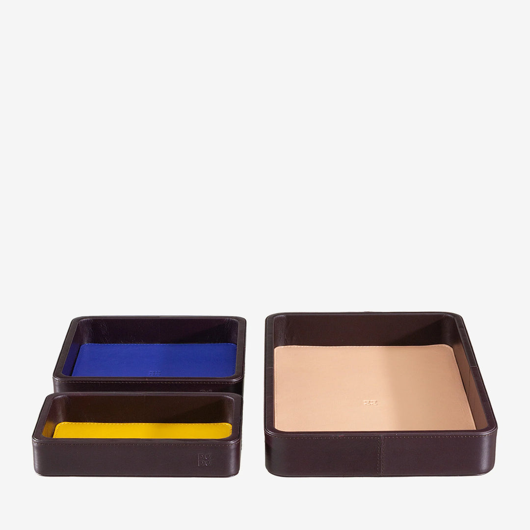DUDU Sæt med 3 stk Læderlommebakke, Bordopbevaringsbakke Hjemmebord Kontor, Nøgleholder, Mønter, Telefon