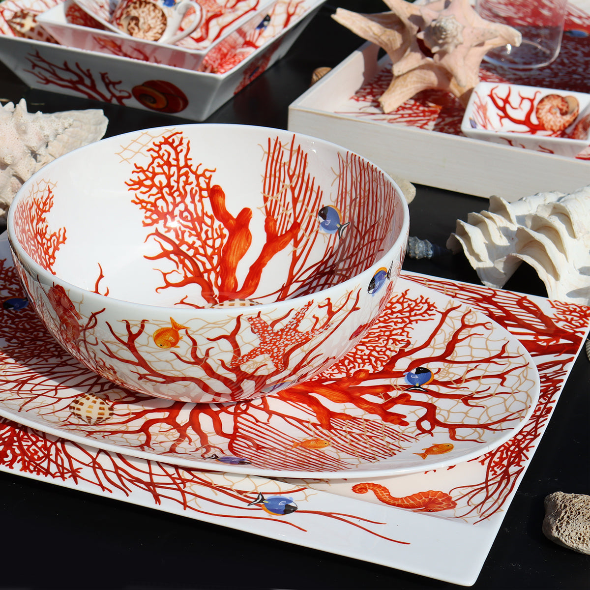 Gennem et design udført med naturalistisk virtuositet og poetisk vision bringer MARE-kollektionen til vores bord havets evige fortryllelse, spejl af ønsker.