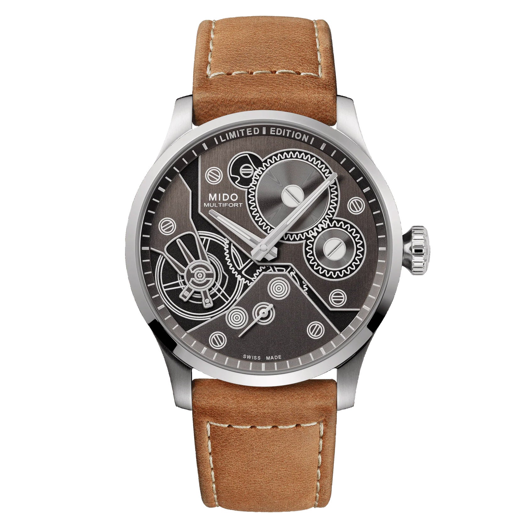 MIDO forvandler fremragende urmageri til et lysshow. På den antracitfarvede skive på den nye Multifort Mechanical sporer Super-LumiNova® formen af kaliberkomponenterne både dag og nat. Et mesterværk, der måler 44 mm i diameter, denne begrænsede udgave fejrer 90-året for Multifort-kollektionen. Et robust stålhus med poleret og satinfinish rummer en åben bagside for at fremvise dets udsøgte og indviklede schweiziske mekaniske urværk med håndviklet kaliber. To ekstra udskiftelige remme fuldender dette storslåede ur, som dermed bliver et symbol på MIDOs oplevelse.