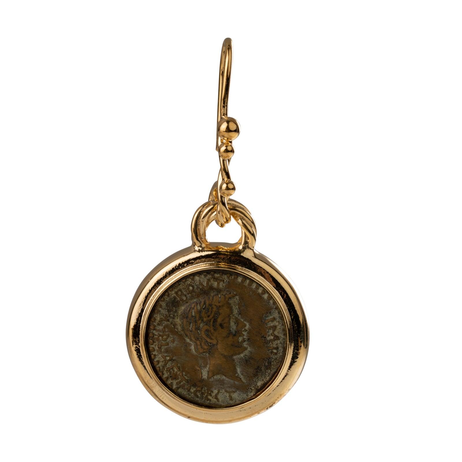 Federica Rossi bronze øreringe med antik mønt med glat ramme belagt med 18 karat guld FR.OR.12