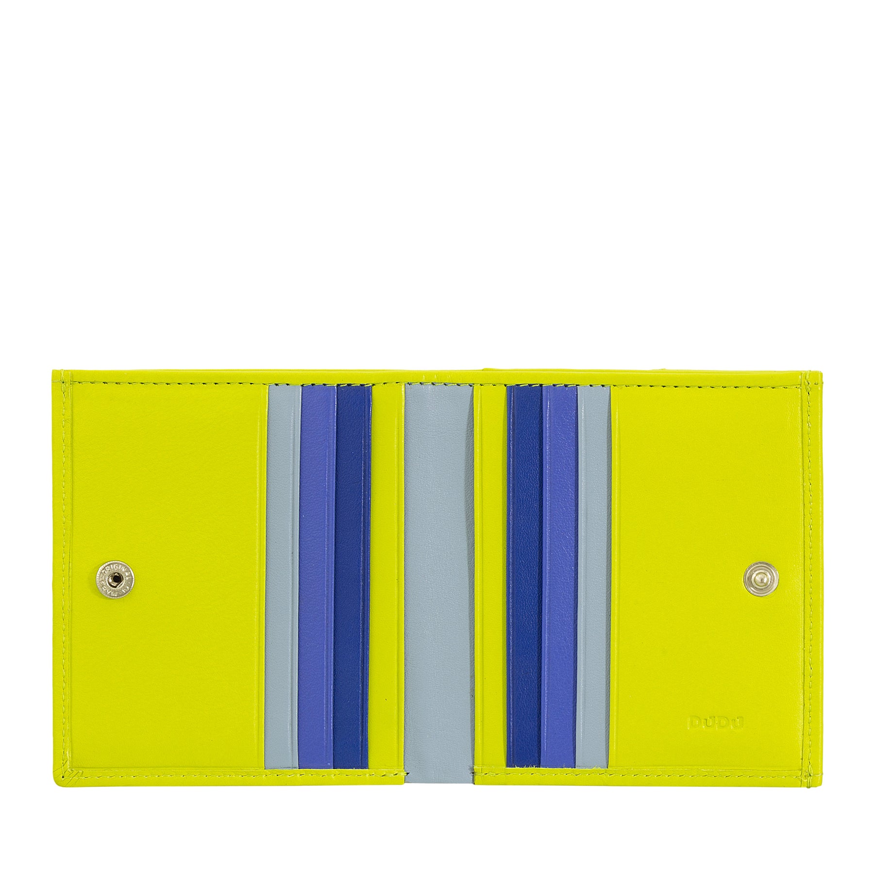 Lille flerfarvet RFID-læderpung til mænd lavet af ægte blødt kalveskind. Indvendige kreditkortlommer og udvendig møntpung. Skil dig ud med Colorful by DuDu.