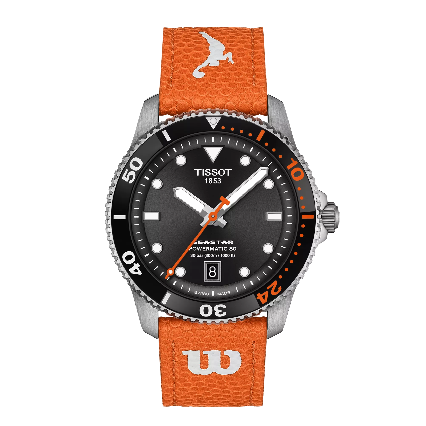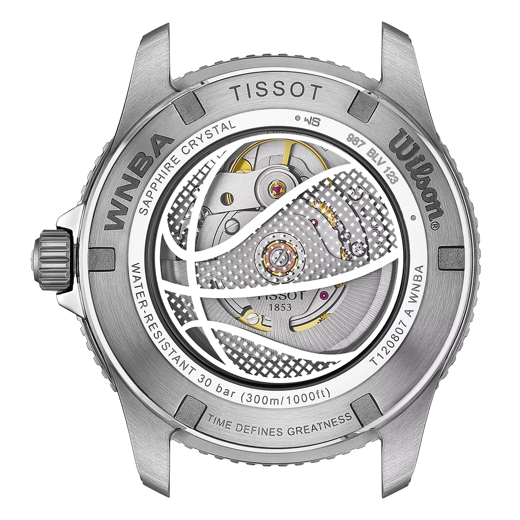 Tissots specialudgave Seastar Wilson WNBA ur tilbyder et præcist og pålideligt automatisk urværk med en høj gangreserve på 80 timer. Det hvide og orange design, som minder om farverne fra WNBA, er yderligere forstærket af en ensrettet roterende bezel, der inkorporerer det 24-sekunders stopur, for at fremhæve Tissots rolle som den officielle tidtager for WNBA. Helt i stål er dette 40 mm ur et elegant og funktionelt valg for elskere af sport og design af høj kvalitet.