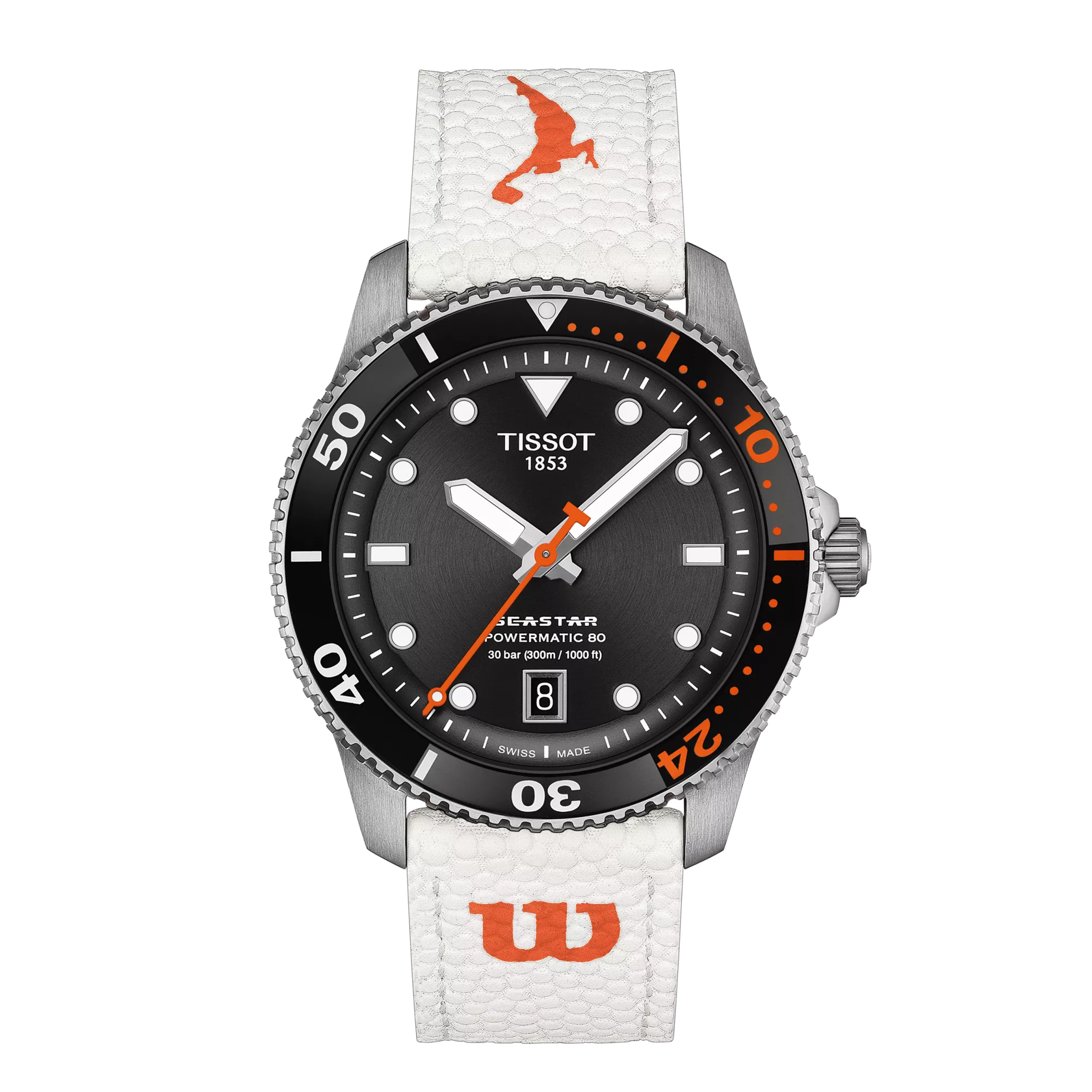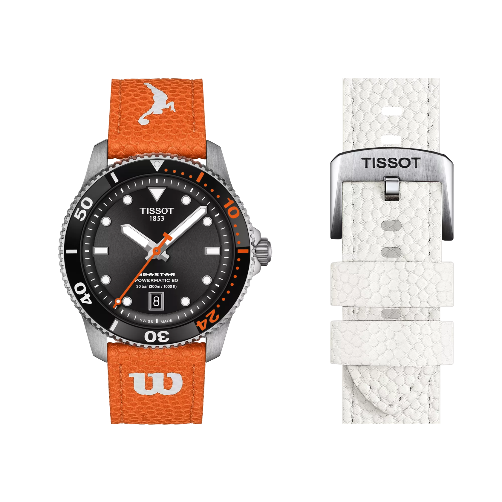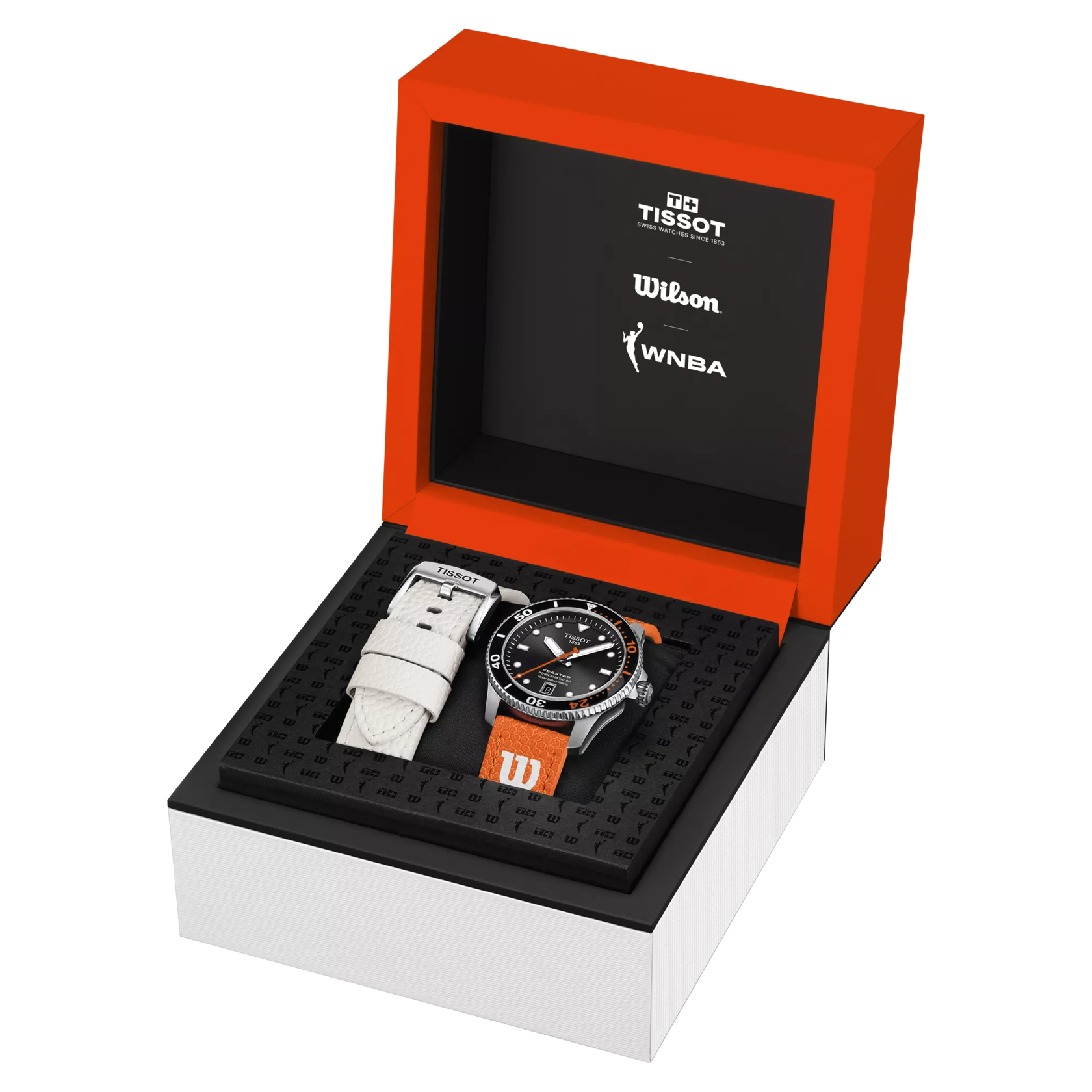 Gør dit look sporty og afgørende med Seastar Wilson WNBA edition 40 mm stål Tissot ur. Remmen integrerer urskivens farver og det officielle Wilson WNBA kompositmateriale for et unikt sporty touch. Med remmens quick release-system kan du vælge mellem en lang række Tissot-muligheder.
