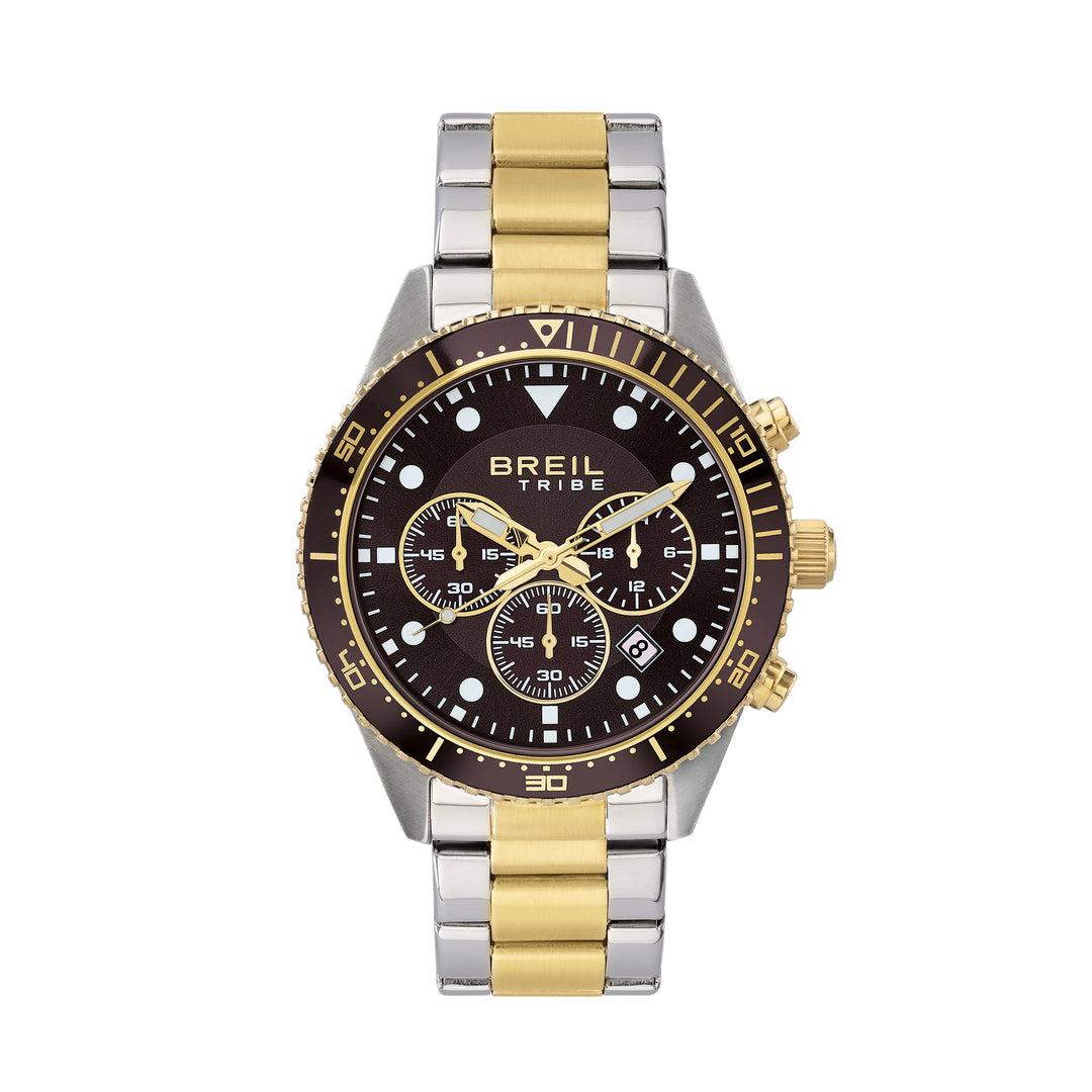 Breil Sail Chrono-Uhr, 42 mm, brauner Quarzstahl, Gelbgold-PVD-Finish EW0794