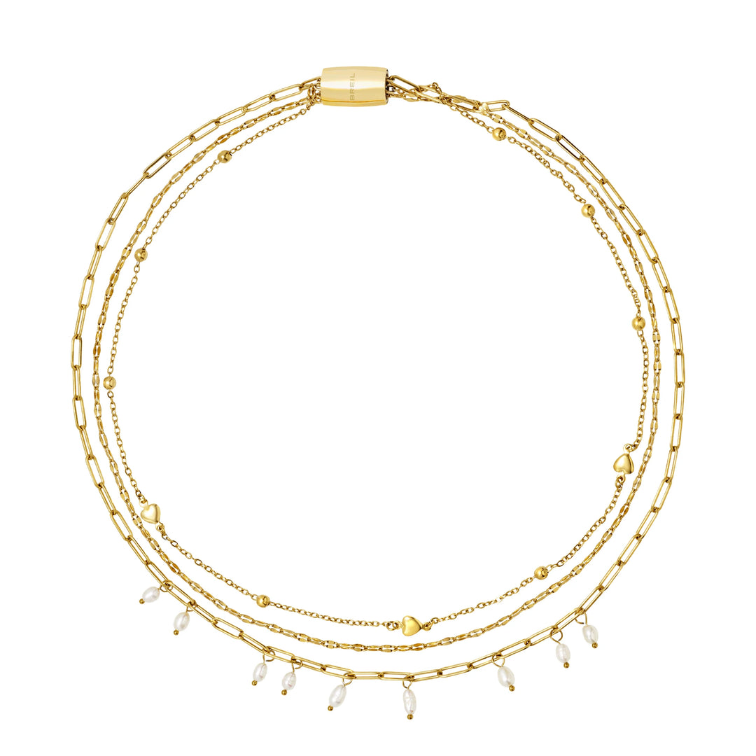 Starre Breil-Bubble-Halskette aus Stahl mit IP-Gold-Finish und Perlen TJ3777