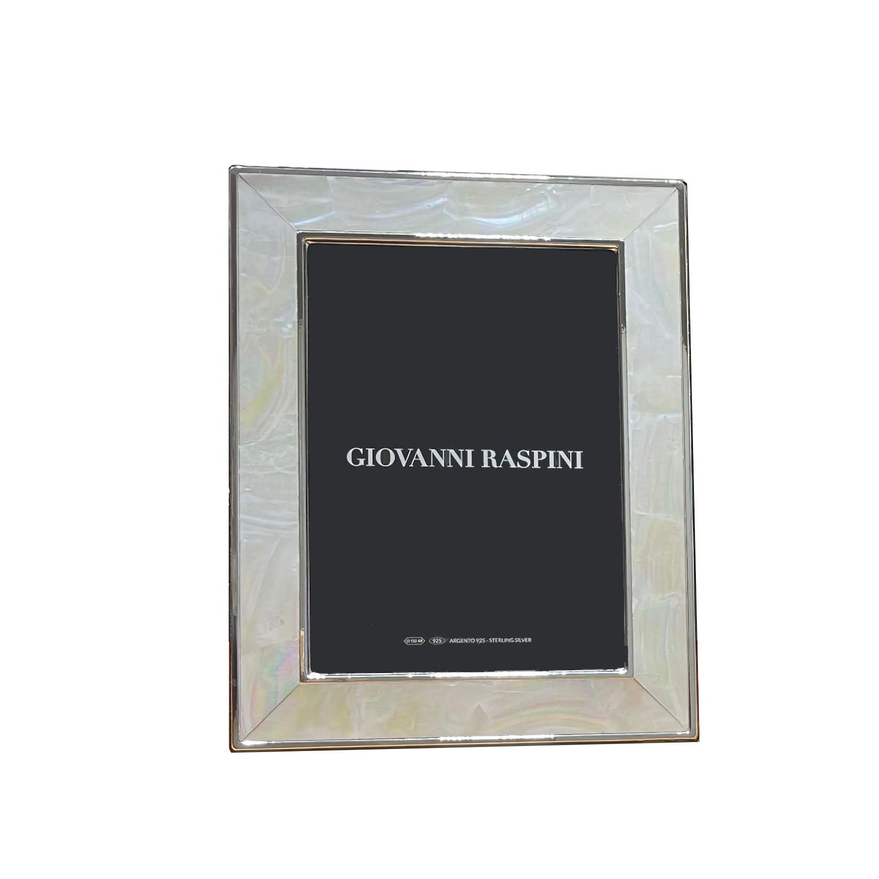 Unsere wertvollsten Erinnerungen werden in diesem kleinen Rahmen aus 925er Silber und Perlmutt von Giovanni Raspini aufbewahrt. Die moderne und leuchtende Textur von durchscheinendem Perlmutt verbindet sich mit der Festigkeit von Silber zu einem unwiederholbaren Objekt, das unsere wertvollsten Bilder zur Geltung bringt.