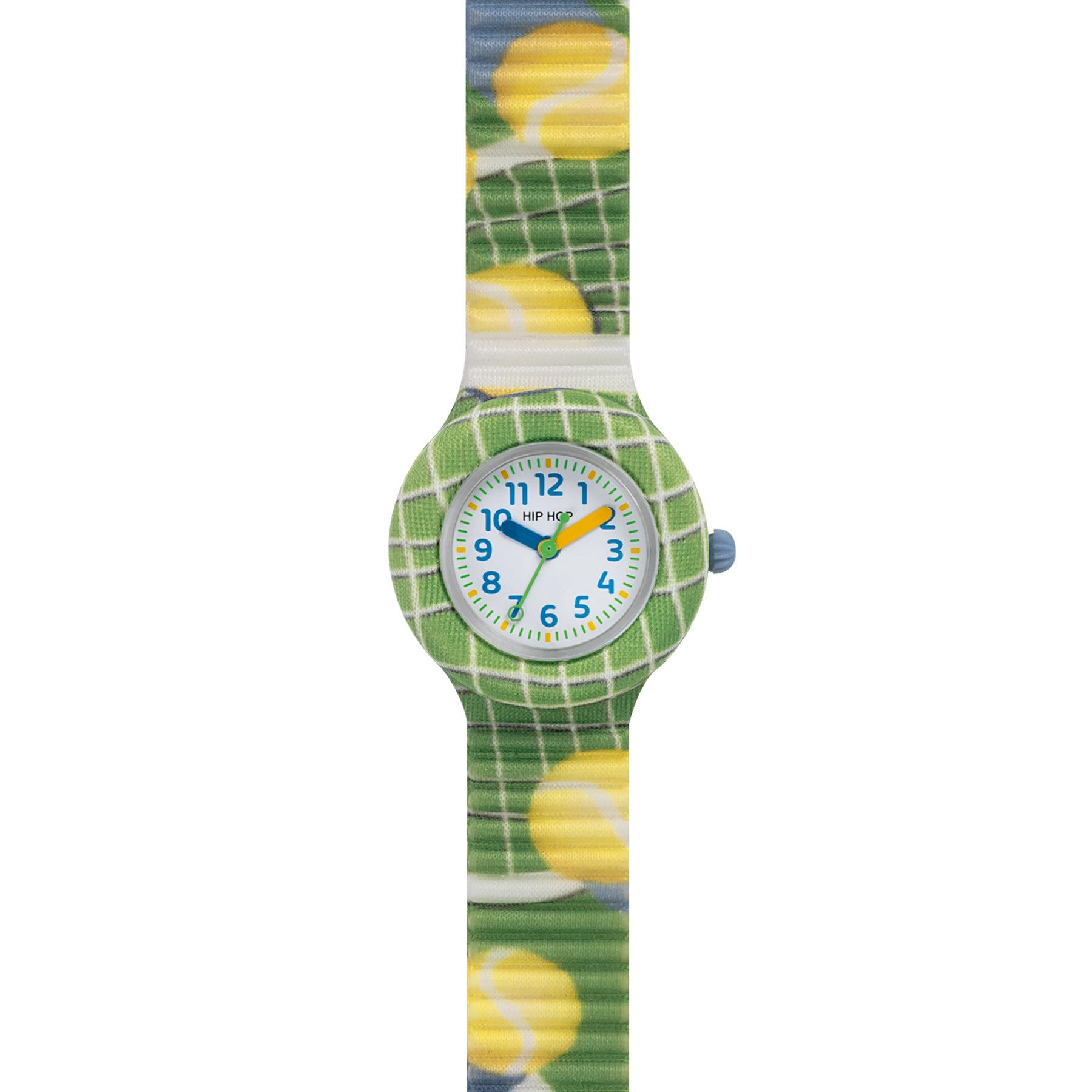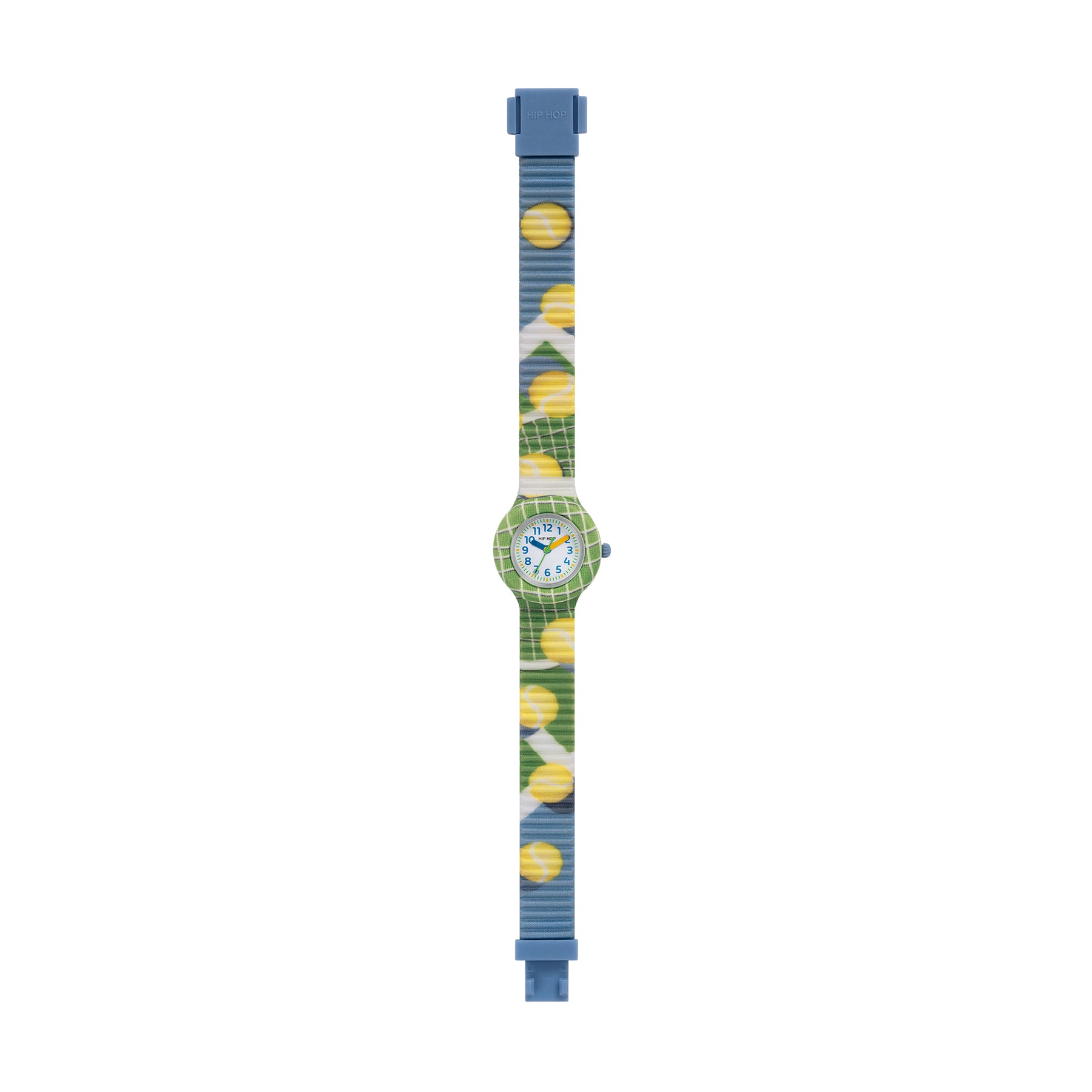 Die Kids Fun Uhr ist perfekt für Kinderhandgelenke. Dank der RPL-Technik ist das Silikonarmband mit dem Stoff verbunden, der mit Tennisgrafiken verziert ist. Auf dem Zifferblatt lässt sich die Uhrzeit leicht ablesen, mit farbigen Kugeln, die das Lernen unterhaltsam und einfach machen.