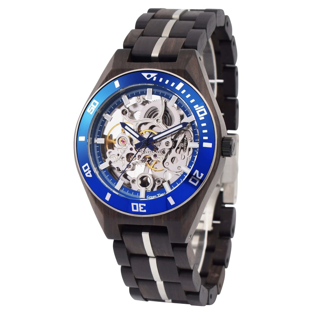 Green Time Automatische 43-mm-Skelett-Automatikuhr aus Stahl und Holz ZW183B