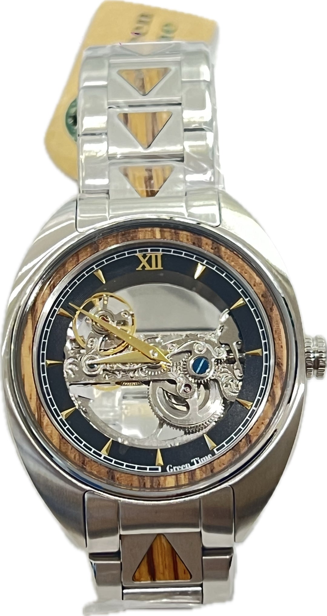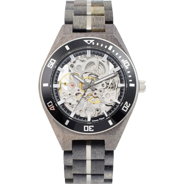 Green Time Automatic 43 mm Skelett-Automatikuhr aus Stahl und Holz ZW183A