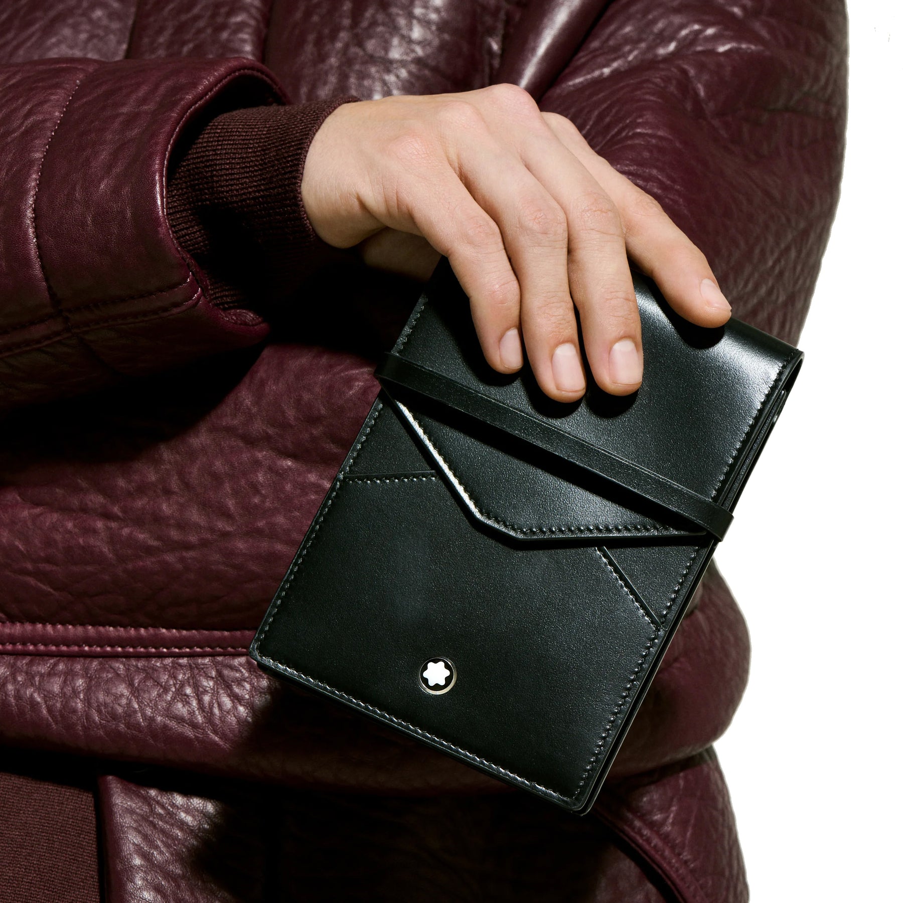 Dieses elegante und dennoch geräumige Schreibgeräteetui ist aus luxuriösem schwarzem Leder gefertigt. Der Klappverschluss ermöglicht die sichere Aufbewahrung von bis zu fünf Schreibgeräten in der Größe eines Meisterstück Classique oder LeGrand und sorgt für eine elegante und sichere Präsentation.