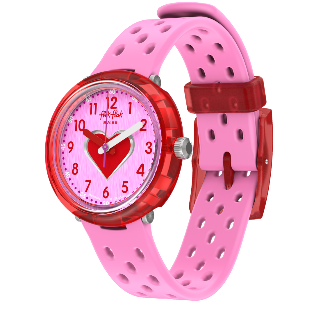 Die FIZZ IN PINK Kinderuhr macht Spaß pur! Mit einem rosa Armband und einem entzückenden roten Herz auf der Vorderseite eignet es sich perfekt zum Erlernen des Ablesens der Uhrzeit. Diese Uhr ist ein ausgezeichnetes Geschenk für alle kleinen Mädchen, die Rosa lieben und immer elegant sein wollen.