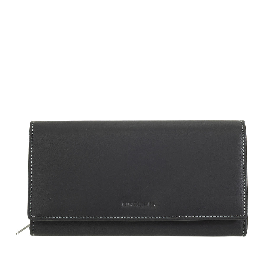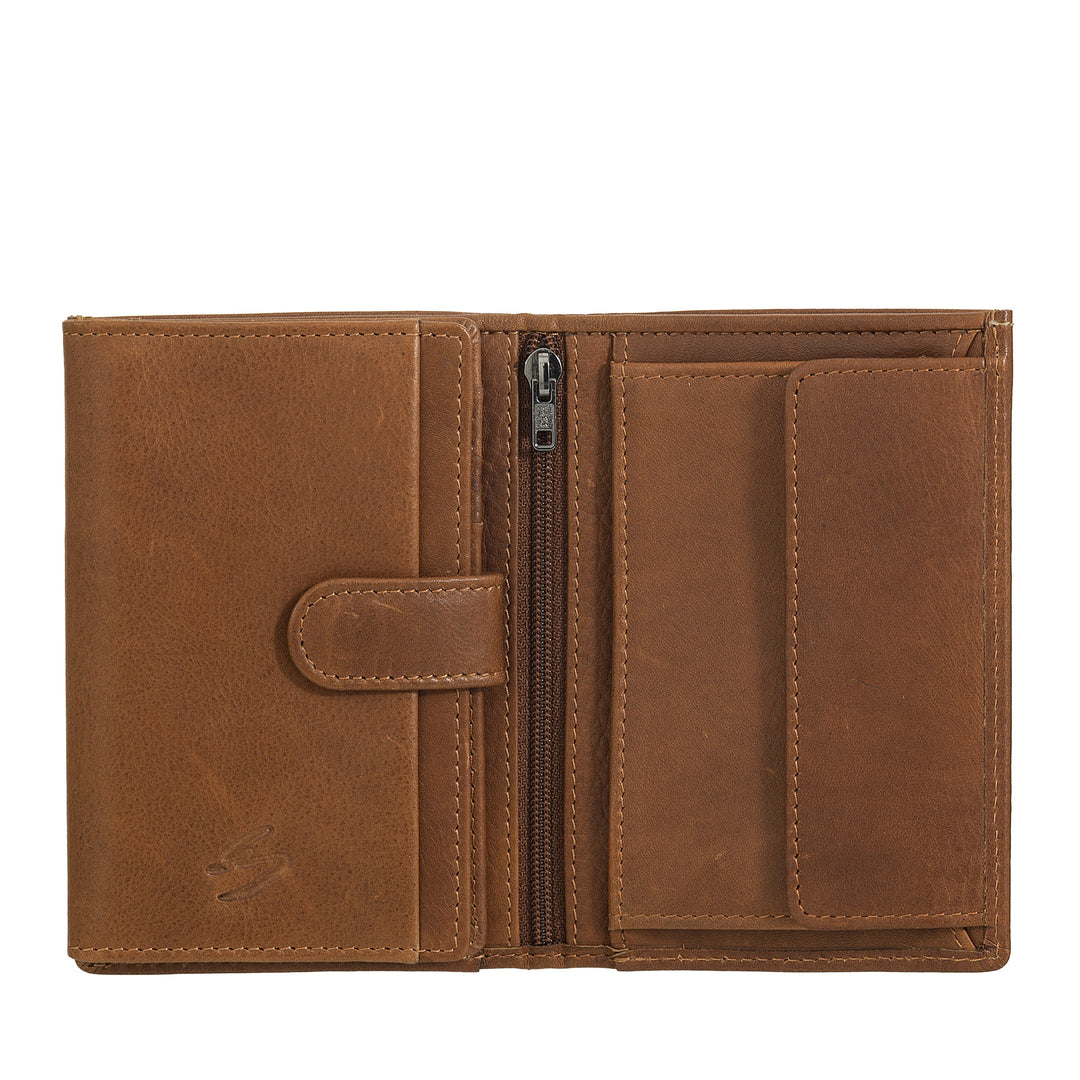 Μικρό γυναικείο δερμάτινο πορτοφόλι Nuvola Pelle - Κομψό και συμπαγές με φερμουάρ για κέρματα, θήκη για κάρτες και τραπεζογραμμάτια, κλείσιμο με κουμπιά με καρτέλα