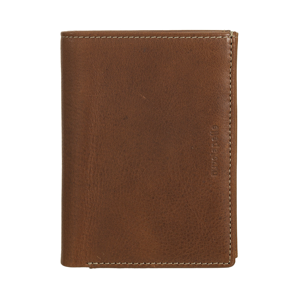 Ανδρικό κάθετο δερμάτινο πορτοφόλι Nuvola Pelle - Κομψό διπλό πορτοφόλι με τσαντάκι νομισμάτων, εσωτερικό κλείσιμο με καρτέλα, υποδοχές για κάρτες και τσέπη με φερμουάρ