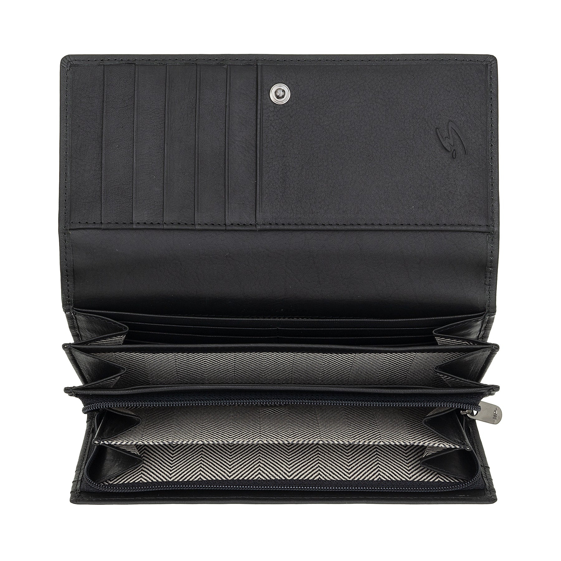 Μεγάλο γυναικείο δερμάτινο πορτοφόλι Nuvola Pelle - Μεγάλη τσάντα κερμάτων και θήκη για κάρτες με πολλές θήκες και κομψό κλείσιμο με κουμπιά