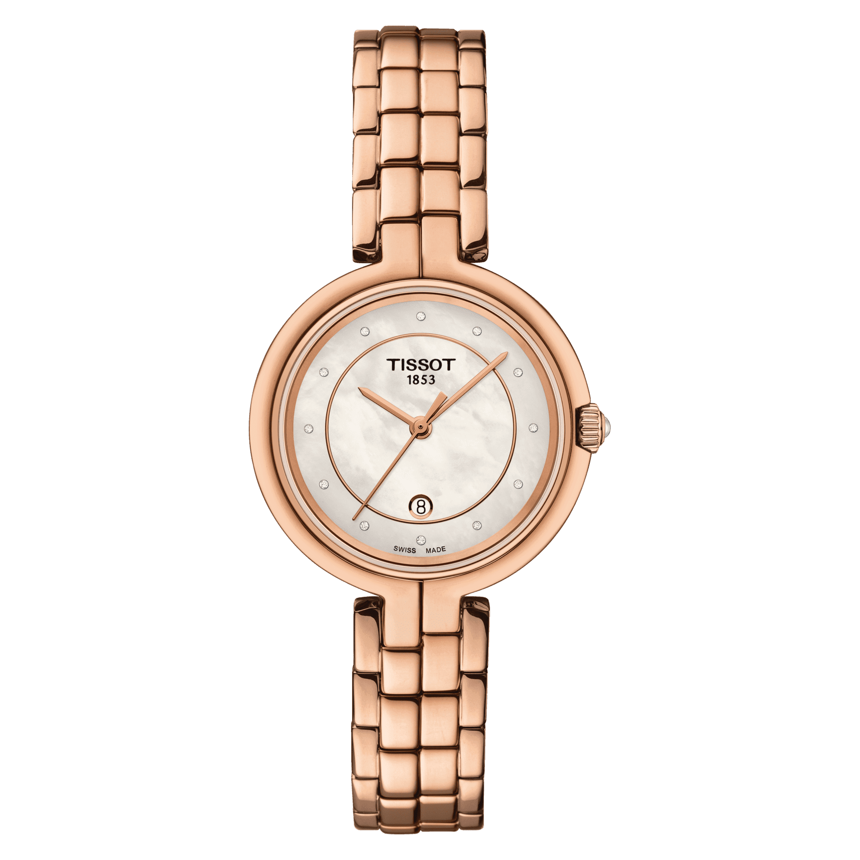 Η χαριτωμένη ισορροπία του Tissot Flamingo δεν αφήνει κανέναν αδιάφορο. Η στρογγυλή θήκη του έρχεται σε αντίθεση με το φίνο βραχιόλι του. Προσφέρει επιλογή μαύρου, λευκού ή μαργαριταριού καντράν, που συμπληρώνεται από ανοξείδωτο, χρυσό ή δίχρωμο βραχιόλι με κούμπωμα πεταλούδας ή δέρμα με τυπική αγκράφα. Προστατευμένο από ανθεκτικό στις γρατσουνιές κρύσταλλο ζαφείρι, κάθε μοντέλο φιλοξενεί μια κίνηση χαλαζία ελβετικής κατασκευής.