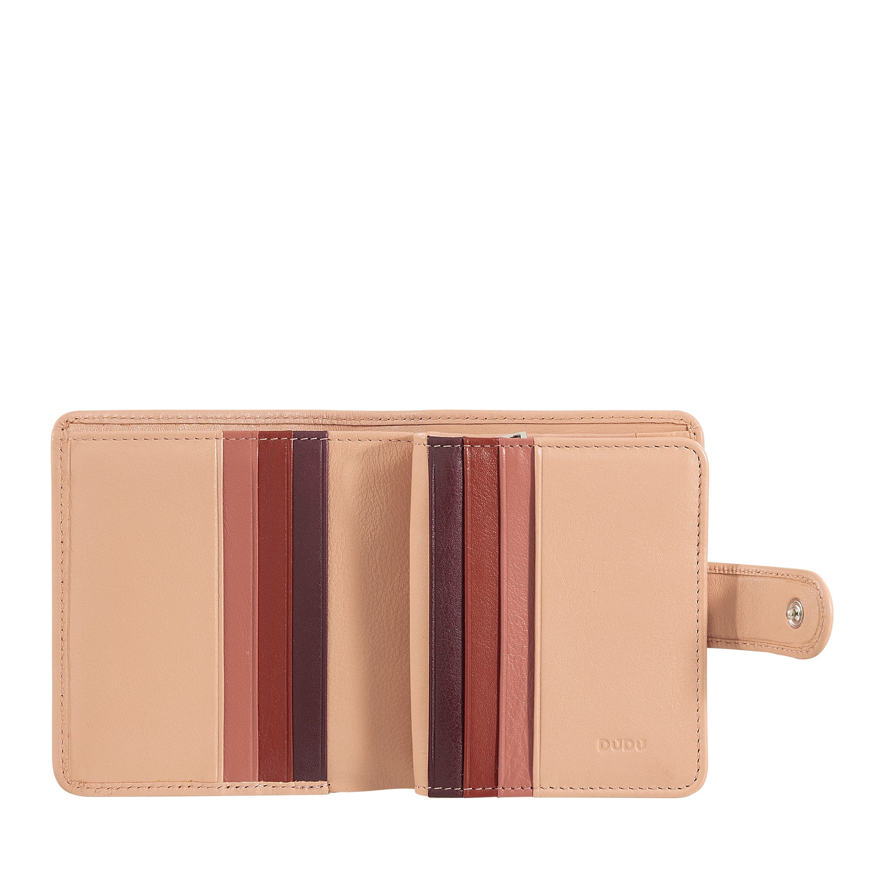 Μικρό γυναικείο δερμάτινο πορτοφόλι DUDU με φερμουάρ τσαντάκι νομισμάτων, συμπαγές πορτοφόλι με κλείσιμο με κουμπί, θήκη τραπεζογραμματίων, θήκη για κάρτες και προστασία RFID