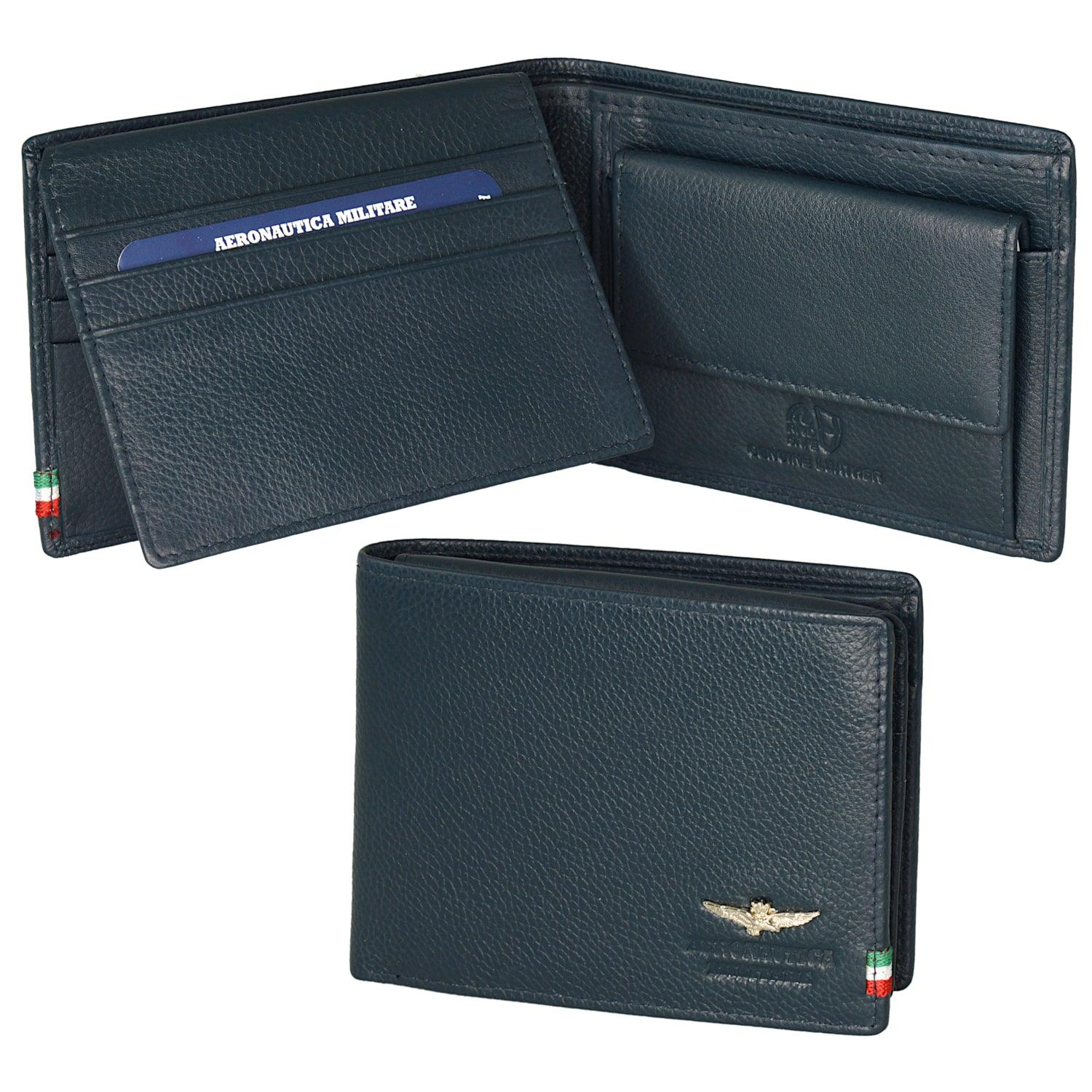 Genuine leather men's wallet with change holder and card holder divider, characterised by the metal eagle with fire branding Air Force and the tricolor ribbon, which help to guarantee the right combination of elegance and sportiness.