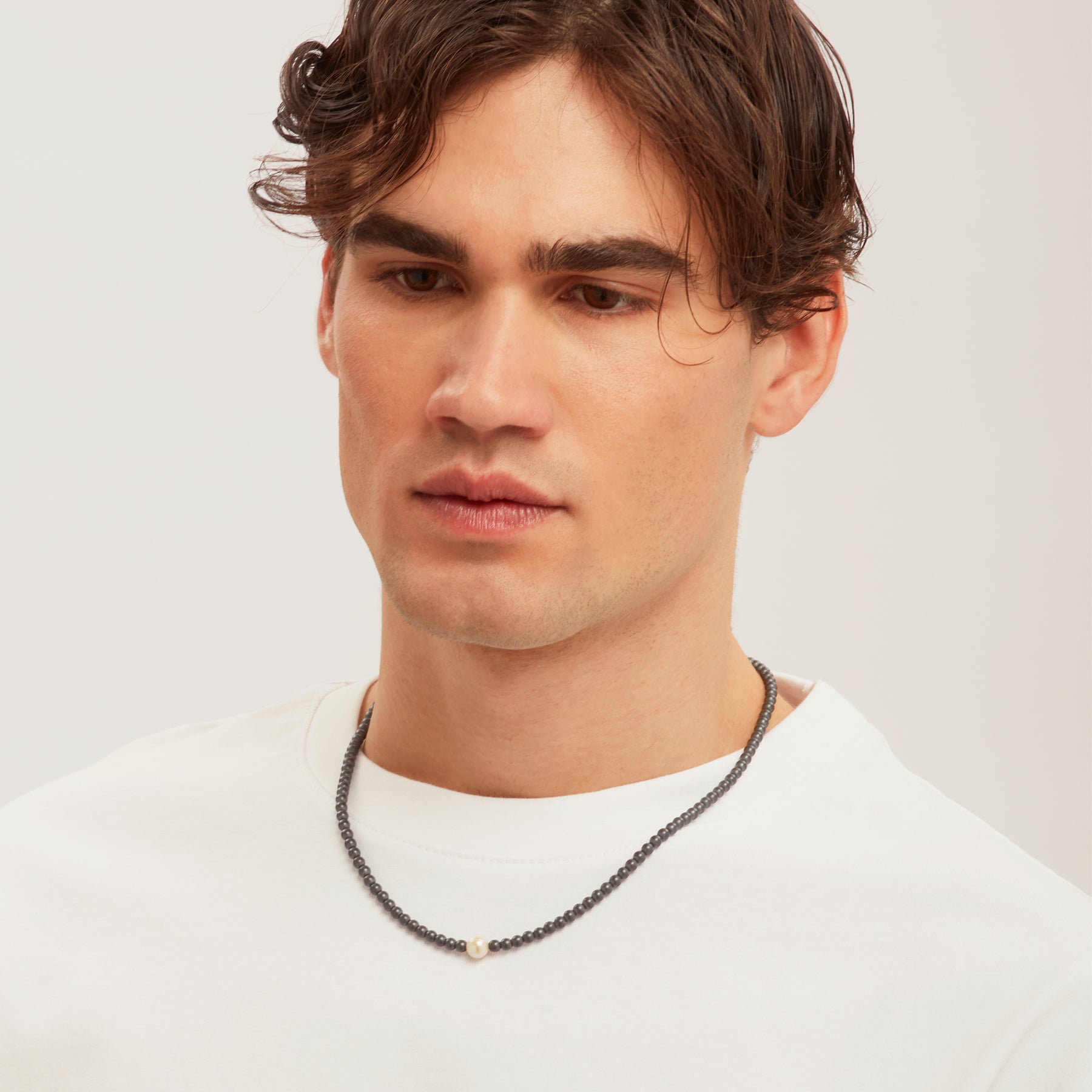 The Hazard necklace stands out for its eclectic and refined design. Characterized by a hematite ball chain, made up of small spheres that follow one another, it is embellished with a pendant with a natural freshwater pearl. Current and versatile, it is perfect for those looking for an original and trendy style. The adjustable clasp allows you to easily change the size of the necklace.