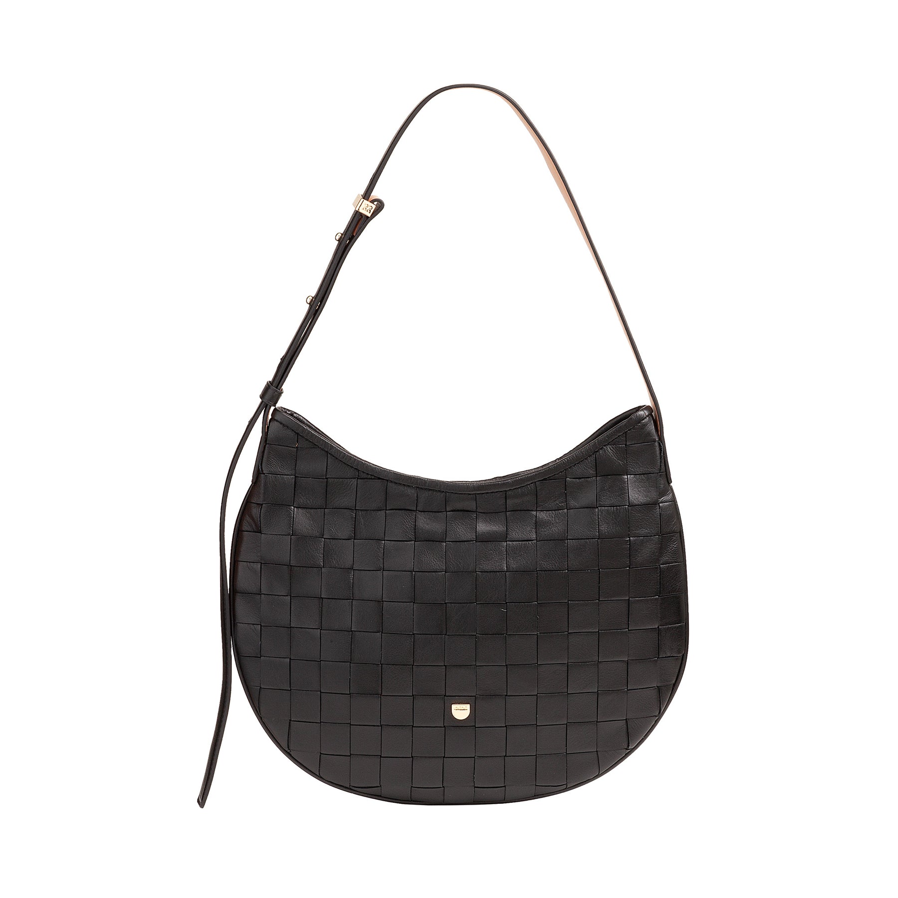 A refined design, craftsmanship that conquers at first glance: this shoulder bag in real woven leather is the perfect balance between style and practicality. The crescent-shaped silhouette makes it versatile and modern, ideal for accompanying you on any occasion - from work to evening events. The adjustable leather shoulder strap ensures comfort and a personalized fit, while the gold metal details add a touch of sophisticated brightness. Inside, the bag offers a well-organised space with a zip pocket and functional compartments, designed to keep the essentials in order without sacrificing elegance. More than an accessory: a small masterpiece of craftsmanship, dedicated to those who want to stand out with class and simplicity.
