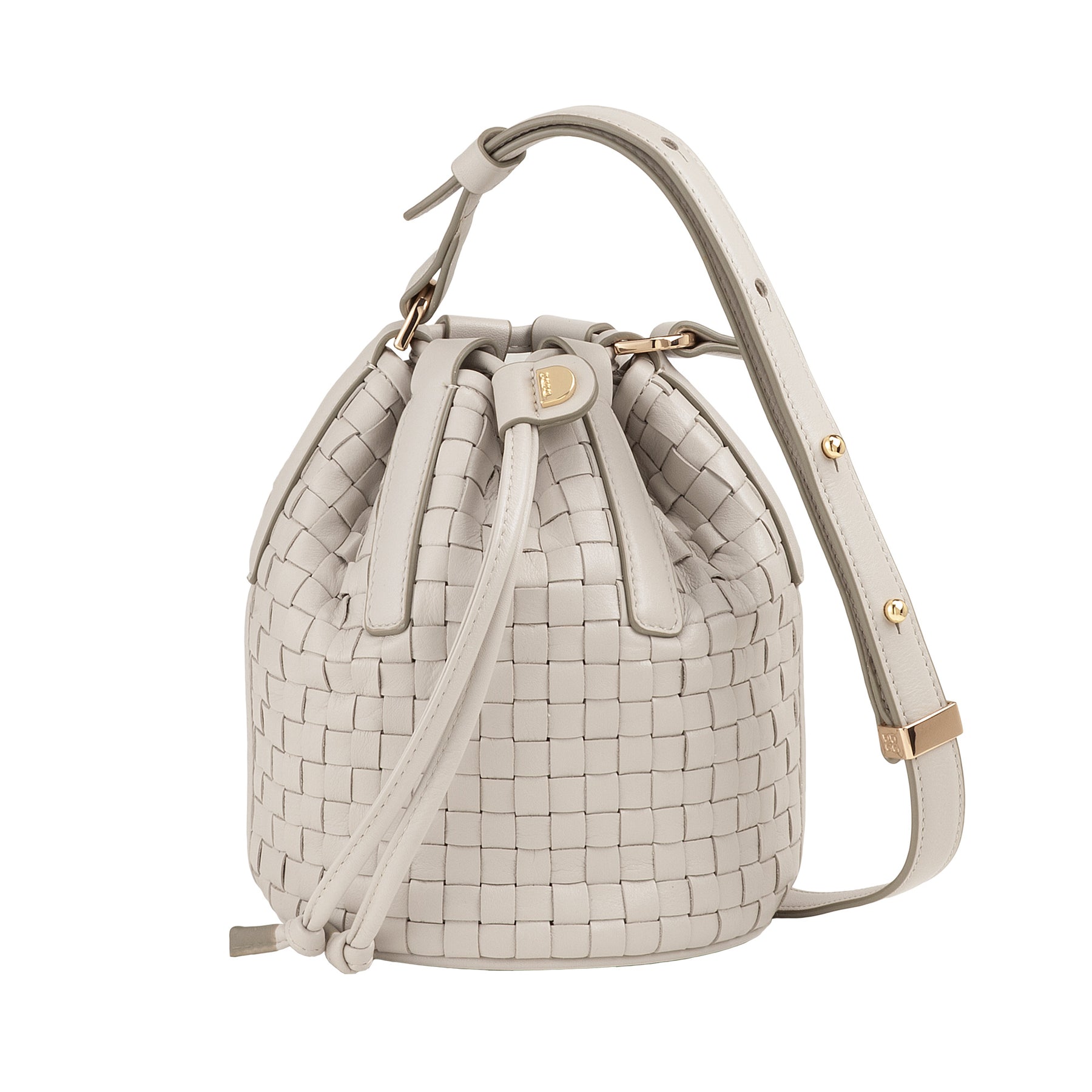 DUDU Woven Leather Bucket Bag - Small Women's Handbag with Adjustable Shoulder Strap, Drawstring and Internal Clutch, Elegant and Craftsmanship