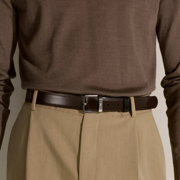 Añade un toque de sofisticación a cualquier look con este cinturón que cuenta con una correa reversible de cuero negro y marrón de 3 cm x 120 cm. El diseño se completa con una hebilla rectangular de acero con un acabado en paladio vintage.