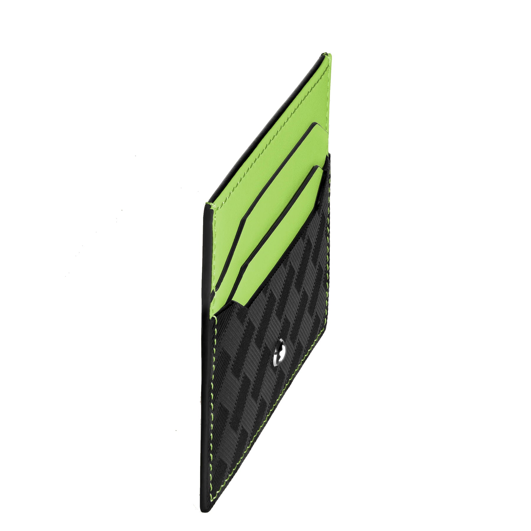 Este elegante y práctico tarjetero combina piel negra grabada con el distintivo motivo Extreme 3.0 con refinados detalles de metal negro. Reimaginado con detalles en cuero suave en tonos lima, cuenta con seis ranuras para tarjetas de crédito y un bolsillo abierto.