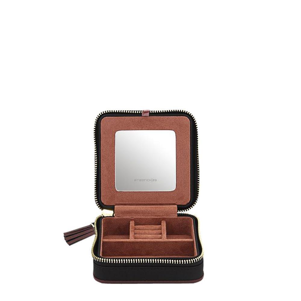 Joyero Friedrich23 con apertura con cremallera, espejo extraíble y compartimentos en varios niveles