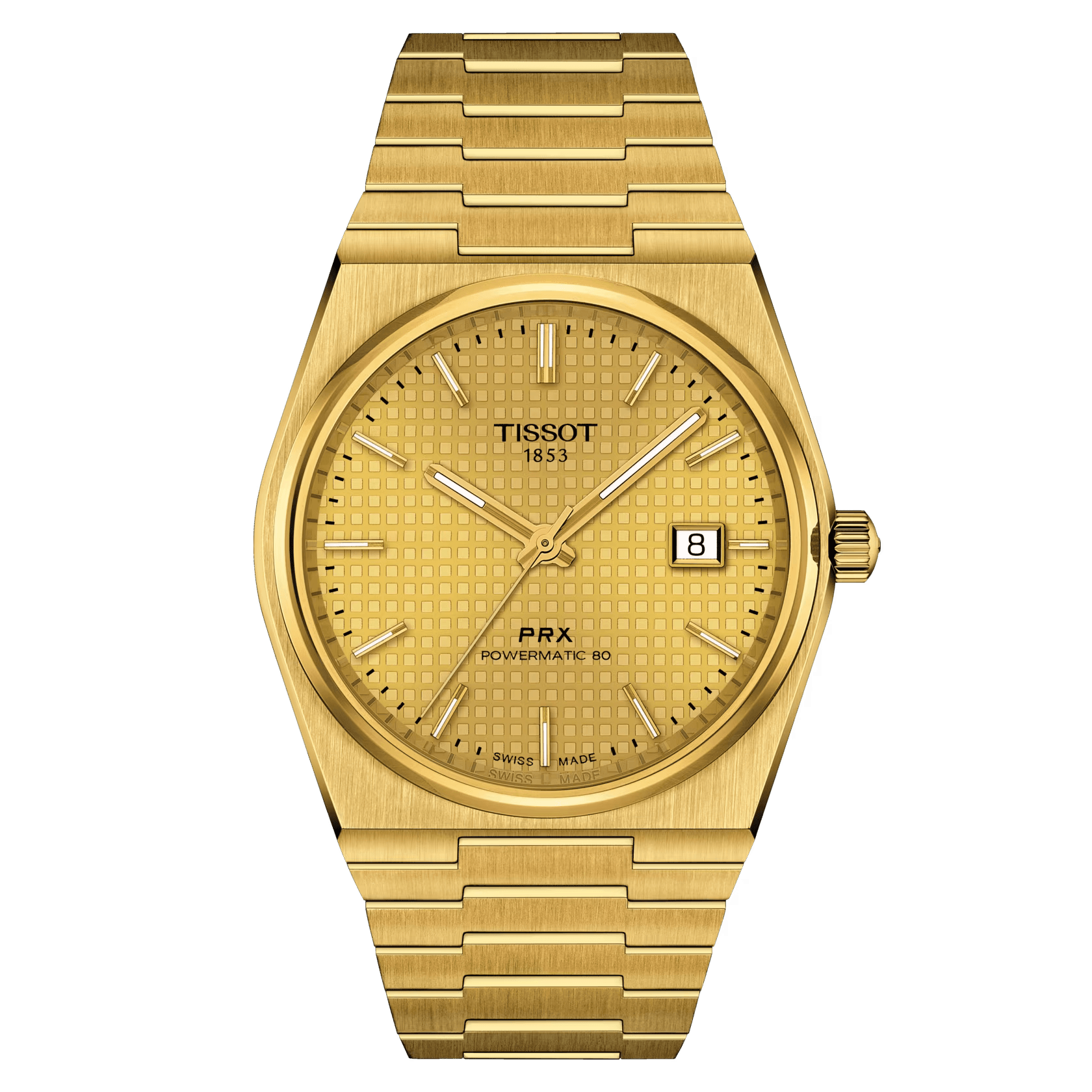 Reloj Tissot PRX Powermatic 80 40mm champagne automático acero PVD acabado oro amarillo T137.407.33.021.00