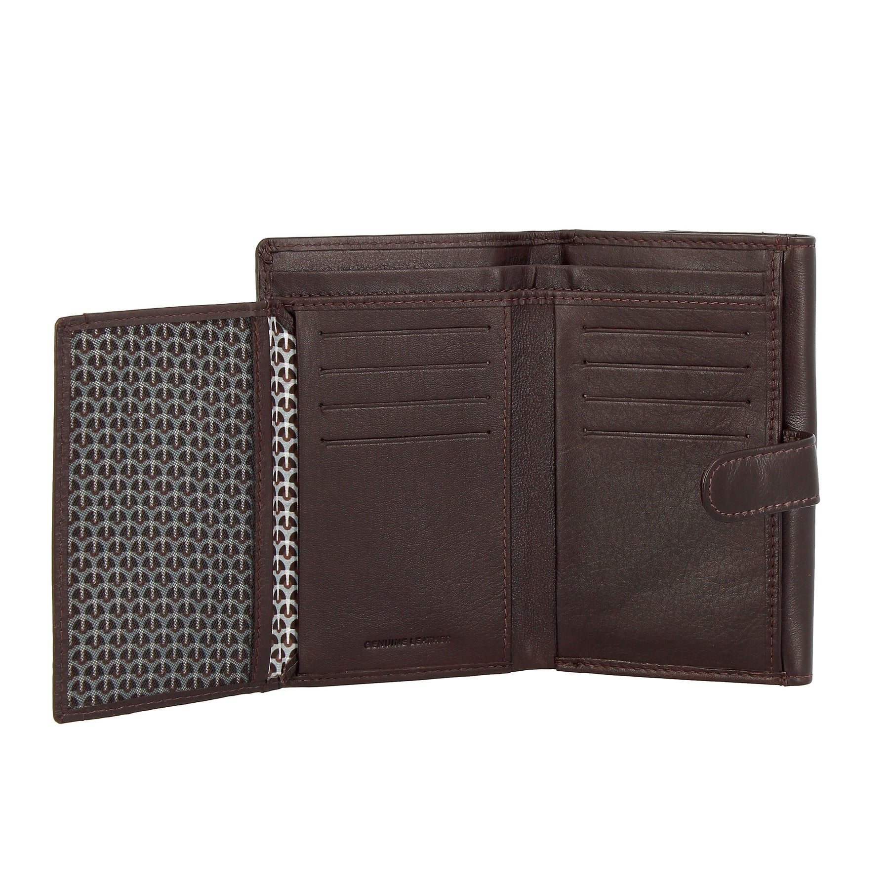 Composición general: 12 bolsillos para tarjetas de crédito, 1 compartimento para monedas, 2 bolsillos para billetes, 1 bolsillo transparente con malla y 6 bolsillos adicionales