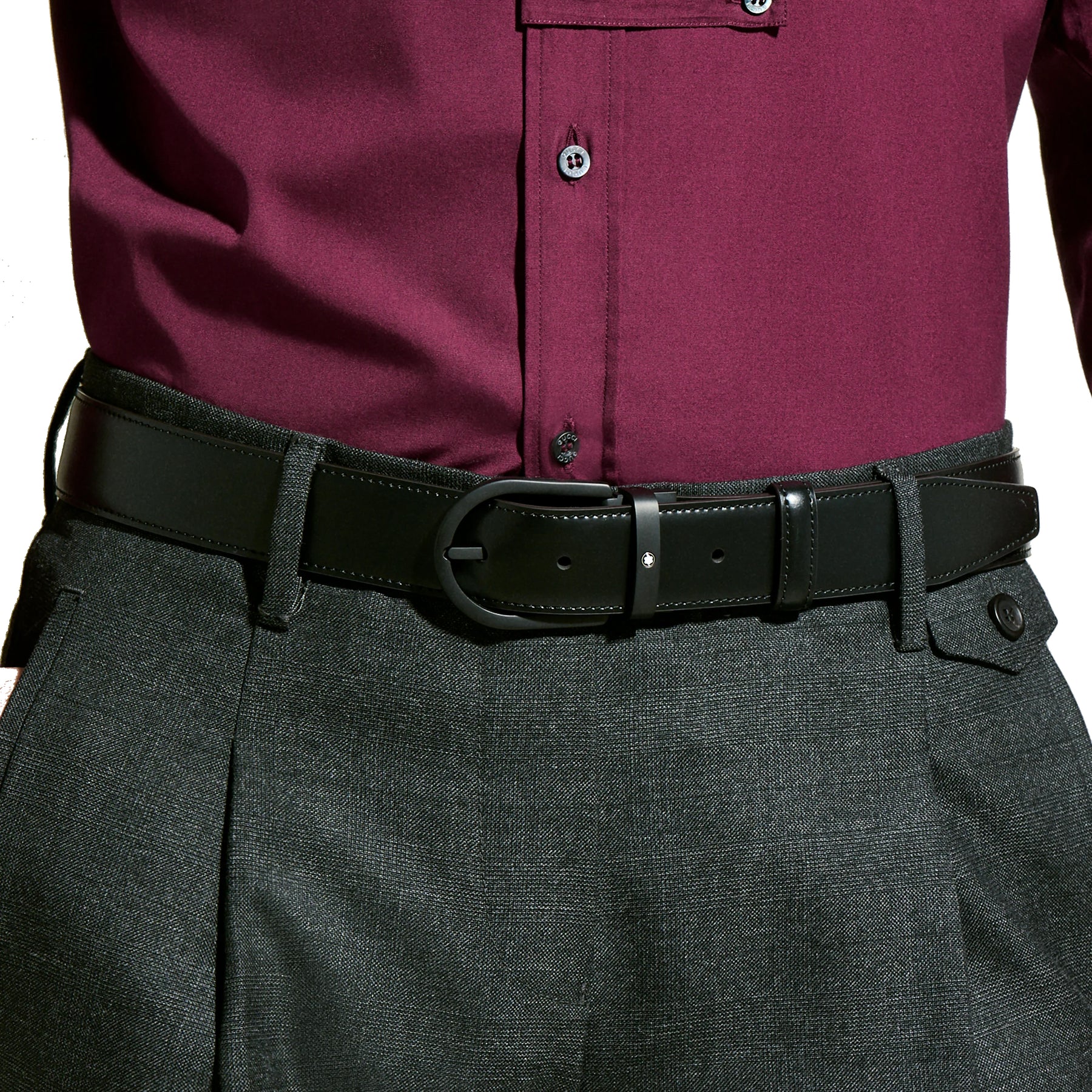 Este elegante cinturón tubular de 35 mm está confeccionado en lujoso cuero negro y cuenta con una exclusiva hebilla de herradura con acabado de PVD negro que le da un toque sofisticado a cualquier conjunto.
