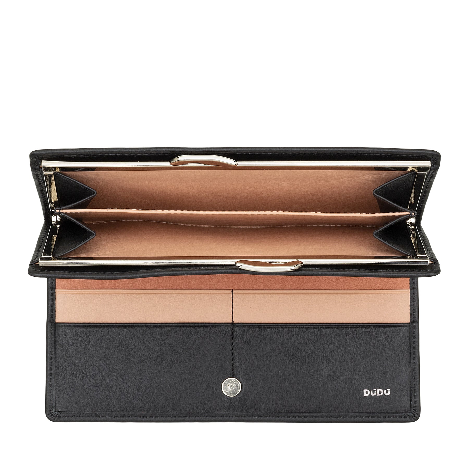 DUDU Cartera Grande para Mujer de Piel Auténtica con Protección RFID, Tarjetero con Monedero Clic Clac, Billetera Colorida